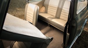Produced in 1964, this example was put together with the UK home market in mind and was delivered to Coventry on November 5 of the same year. 15 years later, a previous owner discovered it during a business trip to a farm in Kent and bought it on the spot. He then repaired it and repainted it back in its original color combo of Tweed Grey and Old English White, after being found finished in Red and White.