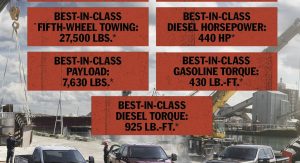 Ford has announced its latest heavy-duty truck can tow as much as 32,500 pounds; that’s for the F-450 SuperCrew 4×4 with a gooseneck hitch. Fit it to a fifth wheel and you’re looking at 27,500 pounds, or up to 21,000 pounds with a conventional hitch.