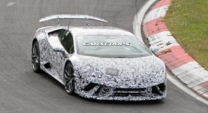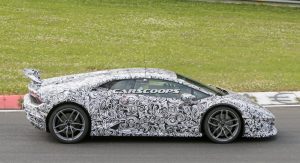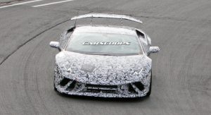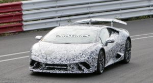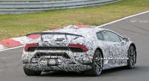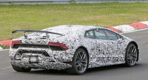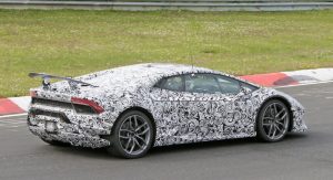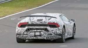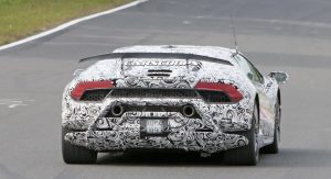 This is the first time we get to see a prototype wearing what looks like a production body. Reports suggest that the even-hotter Huracan will make use of the Superleggera nameplate as it will be lighter by 100kg/220lbs with the targeted use of lightweight materials in the chassis and bodywork.