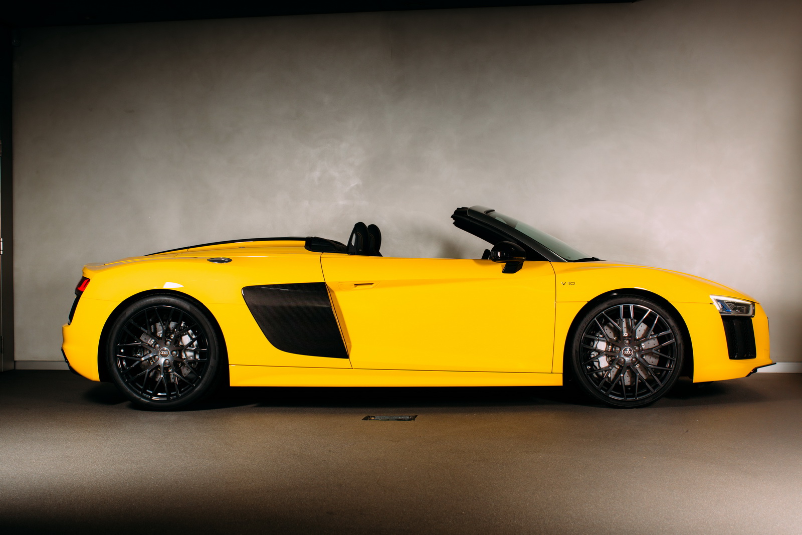 The 5.2-liter V10 produces 532hp (540PS) and 398lb ft (540Nm) of torque and is coupled with a seven-speed dual-clutch S Tronic transmission, making the topless R8 capable of a 197 mph (316 km/h) top speed and a 0-62 mph (0-100 km/h) in just 3.6 seconds.