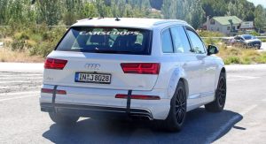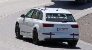 Development of the model is still in its early stages as evidenced by this Q7-based test mule. Nevertheless, the pictures do provide us with a taste of the Q8’s increased size, most notably with the flared wheel arches indicating a wider track.
