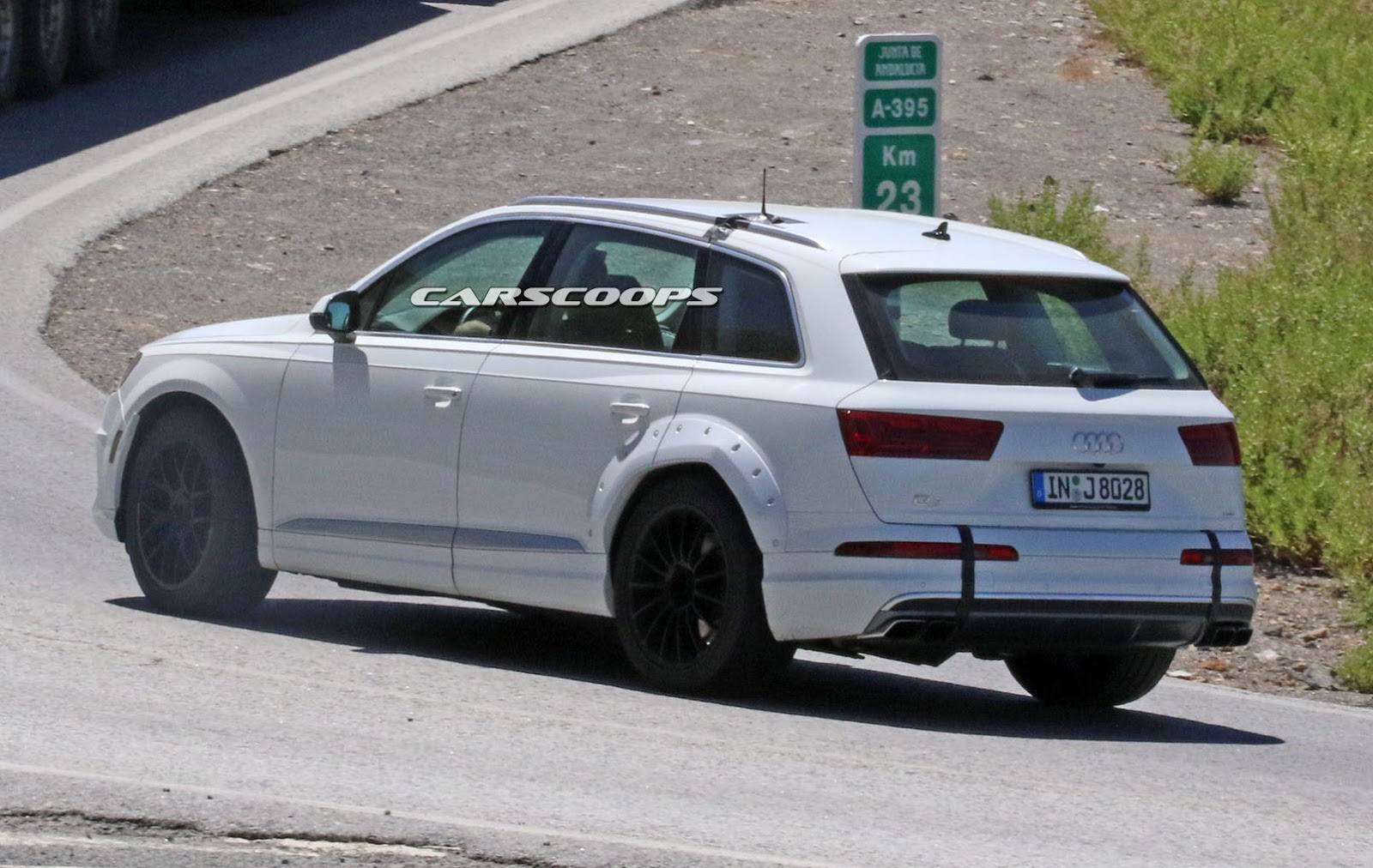 Development of the model is still in its early stages as evidenced by this Q7-based test mule. Nevertheless, the pictures do provide us with a taste of the Q8’s increased size, most notably with the flared wheel arches indicating a wider track.