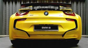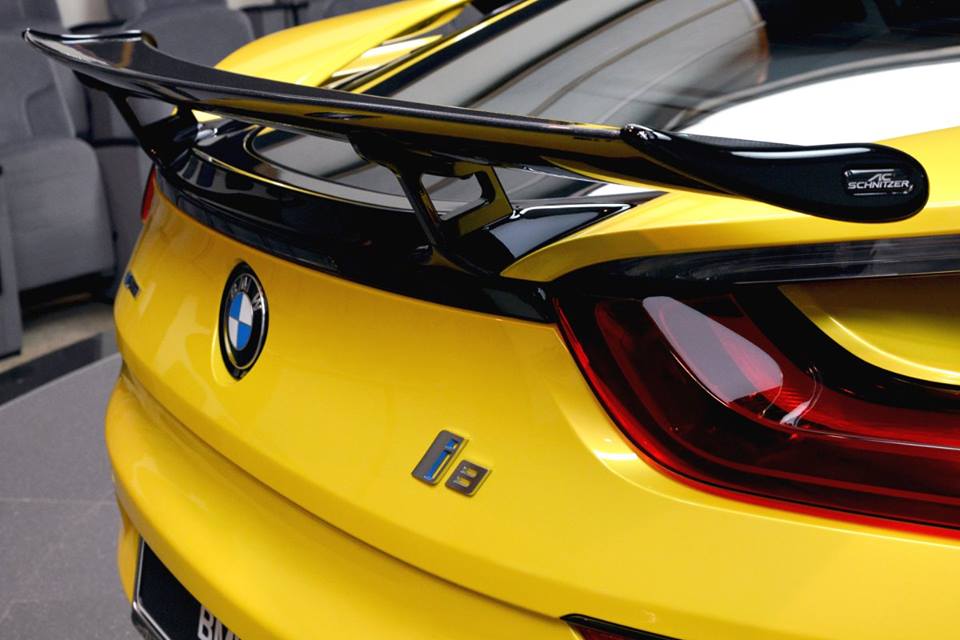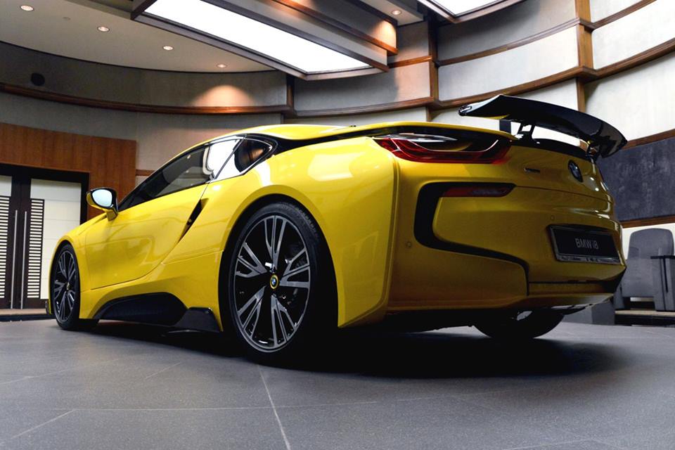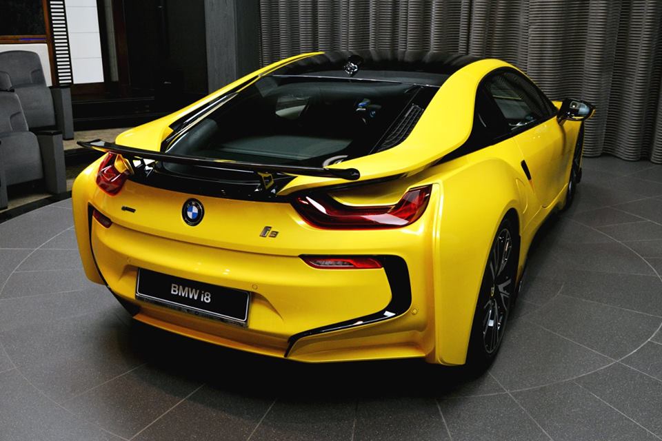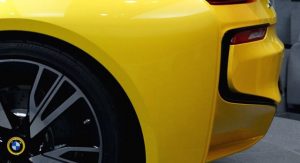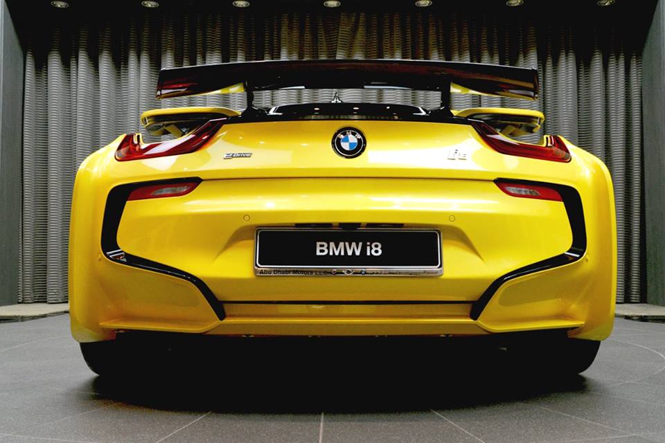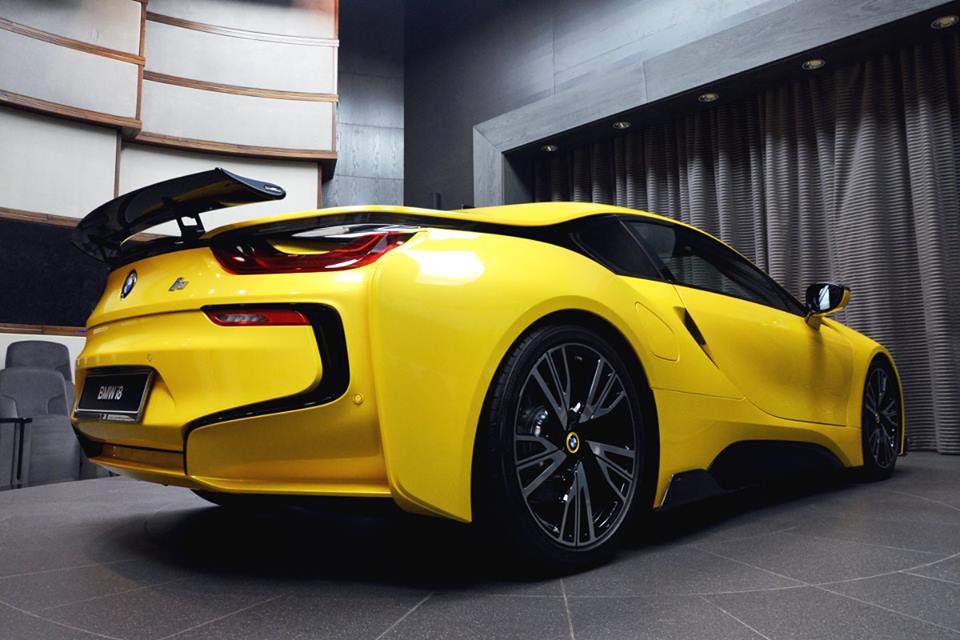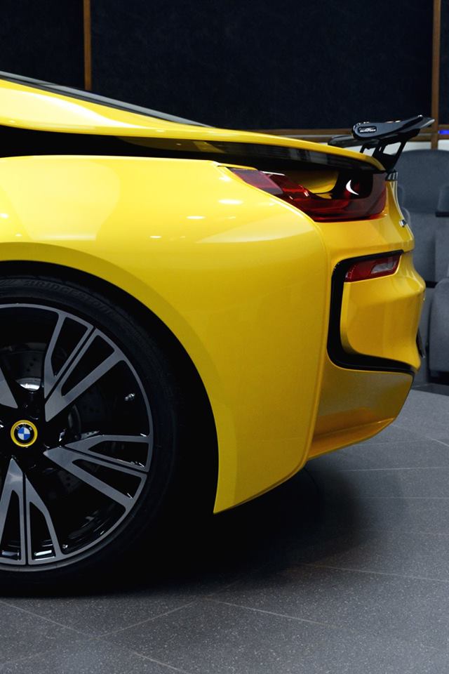 Interestingly, the rear bumper is painted almost exclusively in yellow, rather than the combination of black, blue and white like the vast majority of i8s.