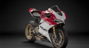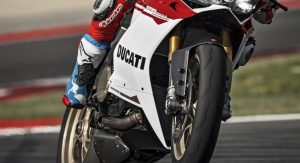 Heel guards, rear mudguard and shock-absorber cover made from carbon fiber help trim five and a half pounds off the bike’s weight, and Ducati also fitted the special edition with all its latest electronic gizmos.