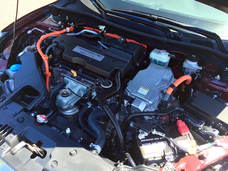 As in the 2014 Accord Hybrid, a 2.0-liter Atkinson-cycle four-cylinder is mated to an electric motor. But Honda has cranked out more power thanks to friction reductions and other changes, to get a combined output of 212 horsepower. That’s 27 more than most four-cylinder Accords have.
