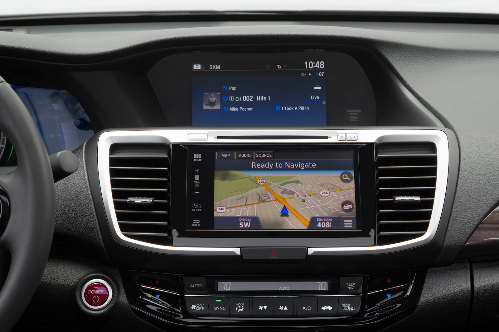 The LaneWatch camera is also standard, but the Accord Hybrid doesn’t incorporate the stop-and-go adaptive cruise offered on the 2016 Civic, which seems like a technological oversight. You also have to spring for an EX-L or Touring hybrid (the top two of the three Hybrid grades offered) for Apple CarPlay and Android Auto, but that means base Hybrid models get a far easier to use knobs-and-buttons arrangement for audio controls.
