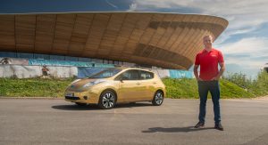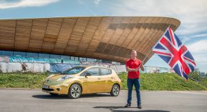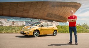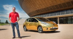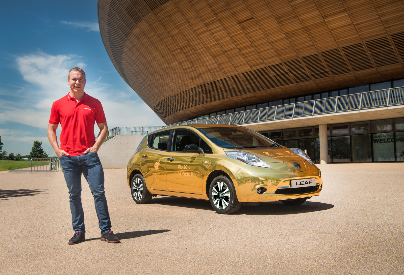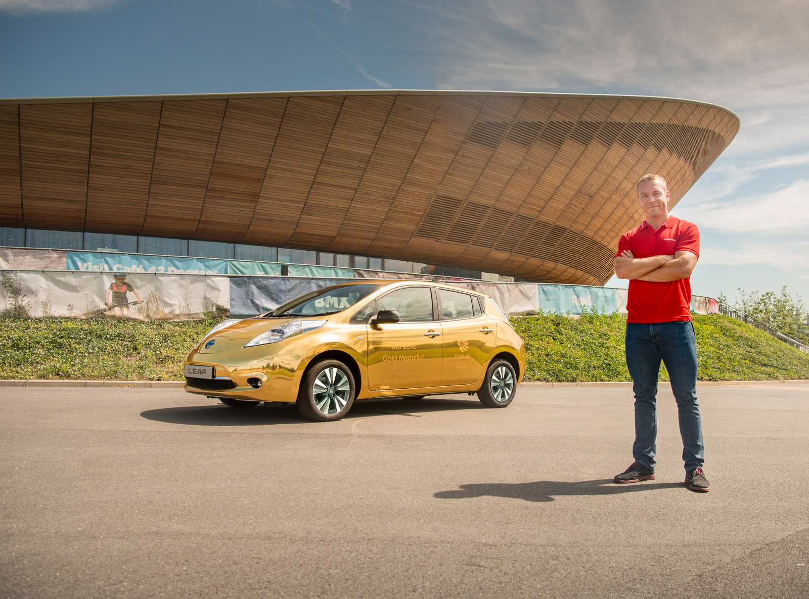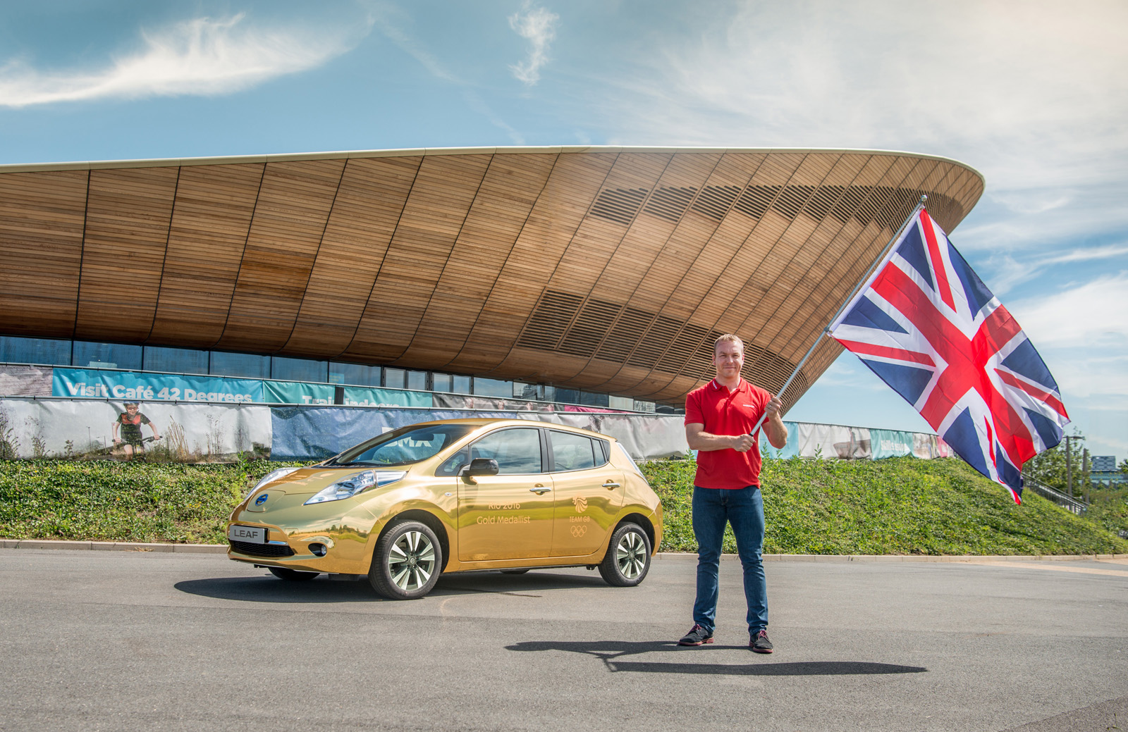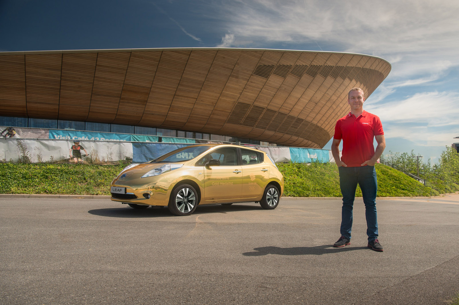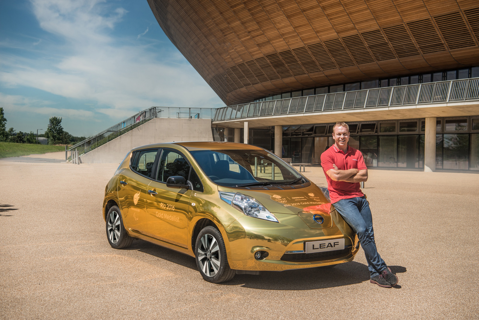 The gilded EV was unveiled by Sir Chris Hoy at the Lee Valley Velopark in London where he won two gold medals in 2012. With another from Athens in 2004 and three more from Beijing in ’08, Hoy is Scotland’s most decorated Olympic athlete and the most successful cyclist of all time. He’s since been trying his hand at motor racing, competing under Nissan power in the British GT Championship, the European Le Mans Series and at the 24 Hours of Le Mans.