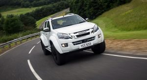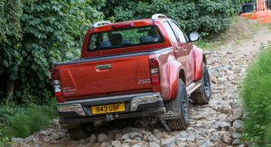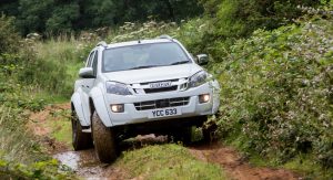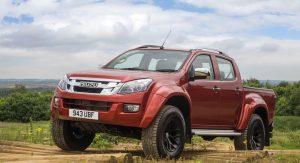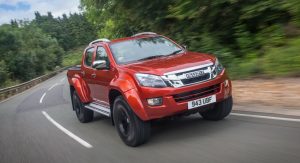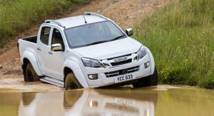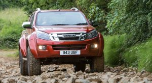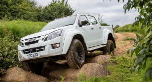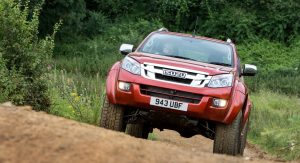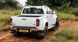 The AT35 is by far the most robust and capable pick-up that Isuzu UK has ever built. It features the regular D-Max’s 2.5-liter turbodiesel engine, one-tonne (2,204 lbs) payload and 3.5 tonne (7,716 lbs) towing capacities, yet adds multiple key enhancements such as a re-engineered suspension, Fox Performance dampers, all-terrain 35″ tires, widened arches and an increased ride height by an extra 125 mm (4.9 in).