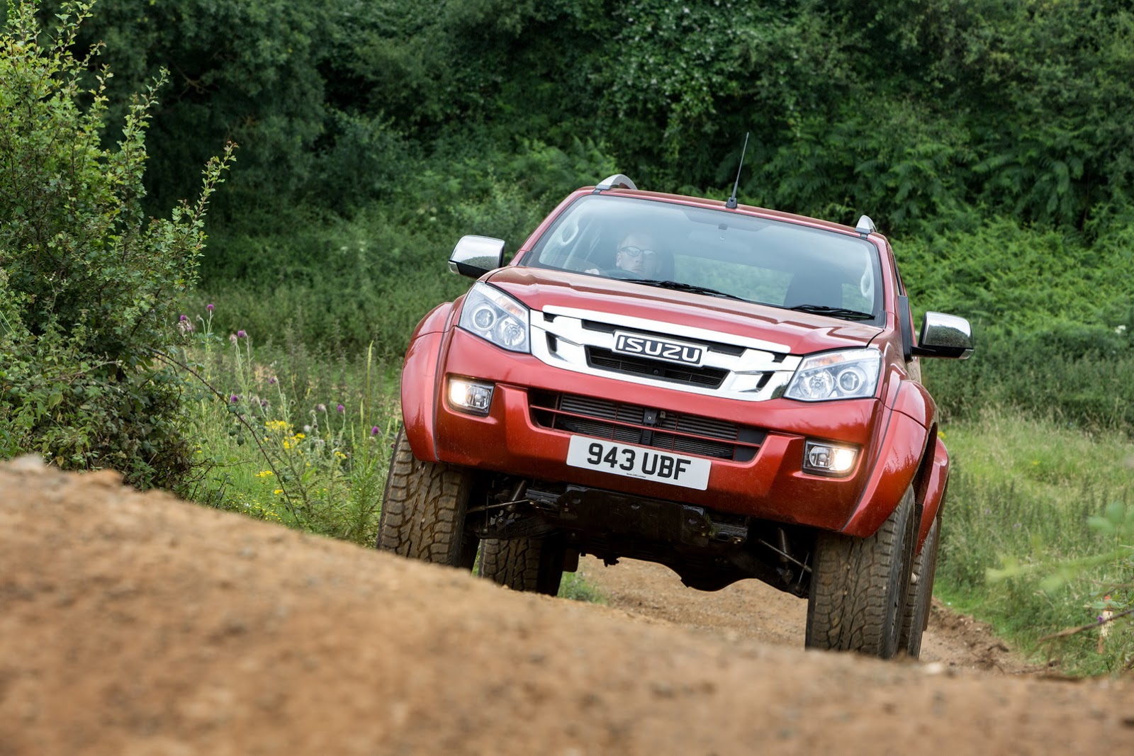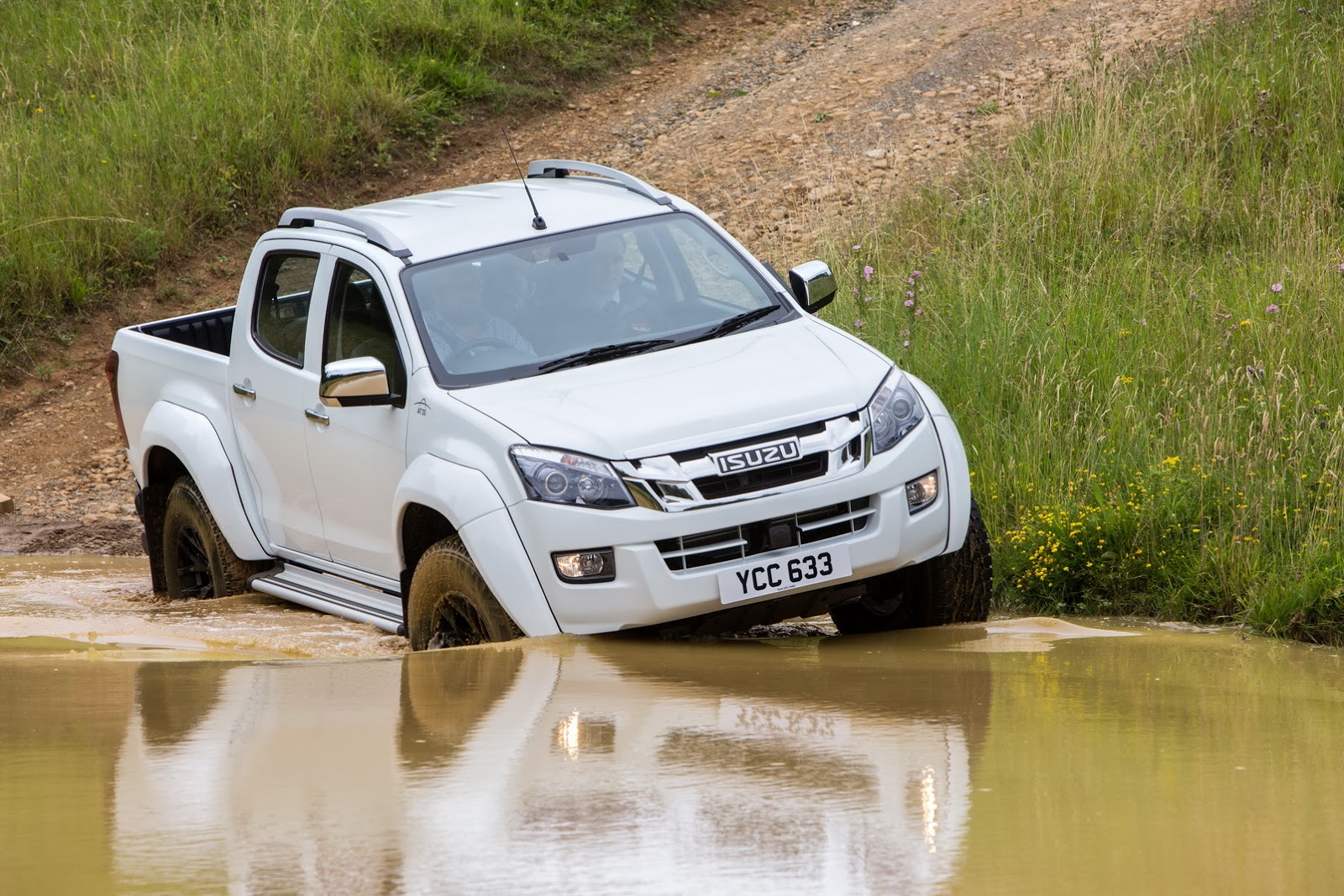 The AT35 is by far the most robust and capable pick-up that Isuzu UK has ever built. It features the regular D-Max’s 2.5-liter turbodiesel engine, one-tonne (2,204 lbs) payload and 3.5 tonne (7,716 lbs) towing capacities, yet adds multiple key enhancements such as a re-engineered suspension, Fox Performance dampers, all-terrain 35″ tires, widened arches and an increased ride height by an extra 125 mm (4.9 in).