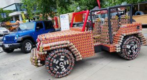 The iconic Jeep was recreated in full scale out of 5,000 cans of non-perishable food with help from students, scouts, and Canstruction, a non-profit organization that specializes in this kind of display.