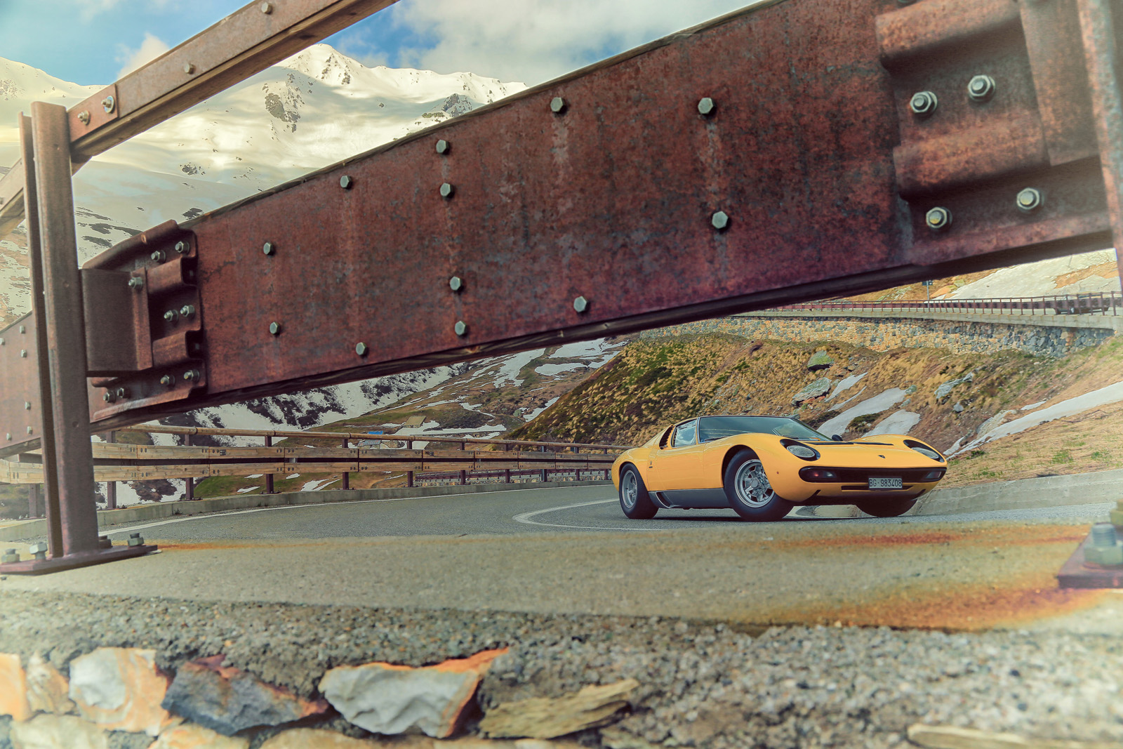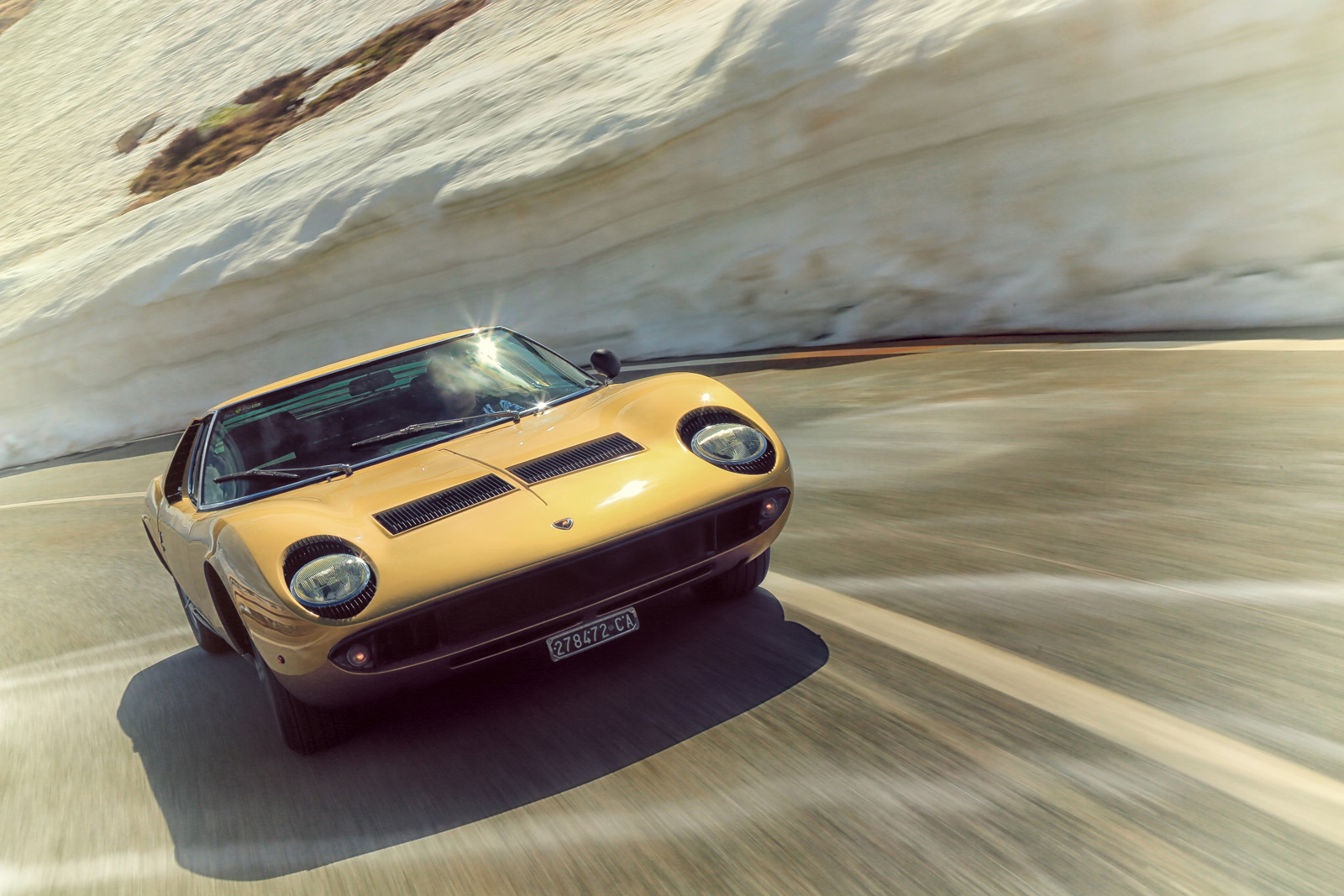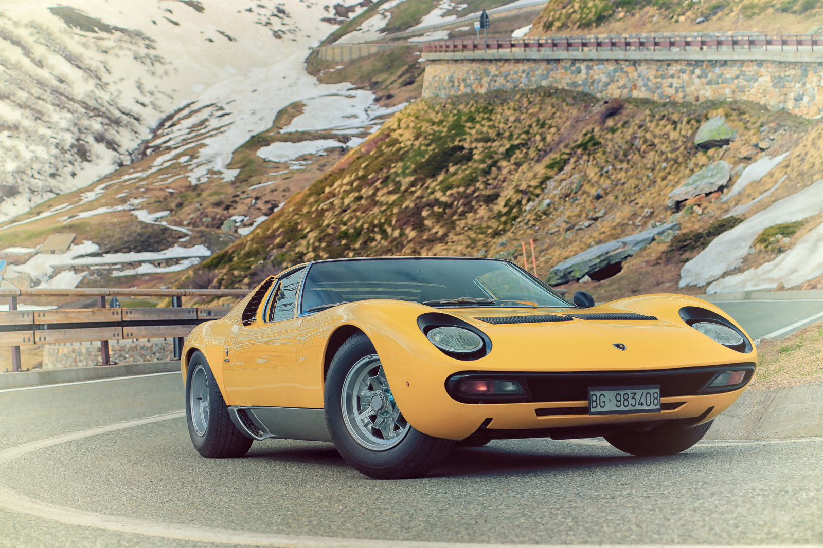 It wasn’t quite as simple as driving there and taking some snapshots, though. The road is usually closed from November through June, but the House of the Raging Bull managed to get the Italian roadworks company to open it specially for the event in May, and the Polizia Stradale to escort the Miuras along the way.