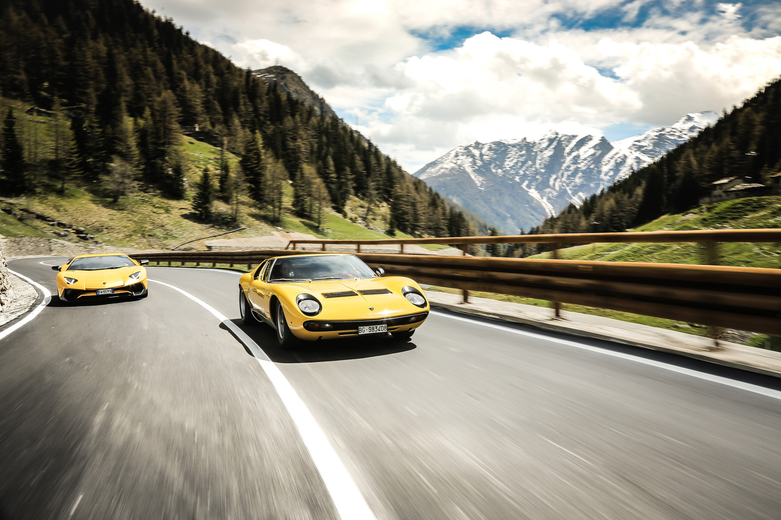 As part of the Miura’s ongoing 50th anniversary celebrations, Lamborghini sent not one, but two examples of the prototypical classic supercar to the Grand St. Bernard Pass where the opening scene was shot nearly half a century ago. The company announced the endeavor over a month ago, but has now released a series of stunning photos and a video to go with it.