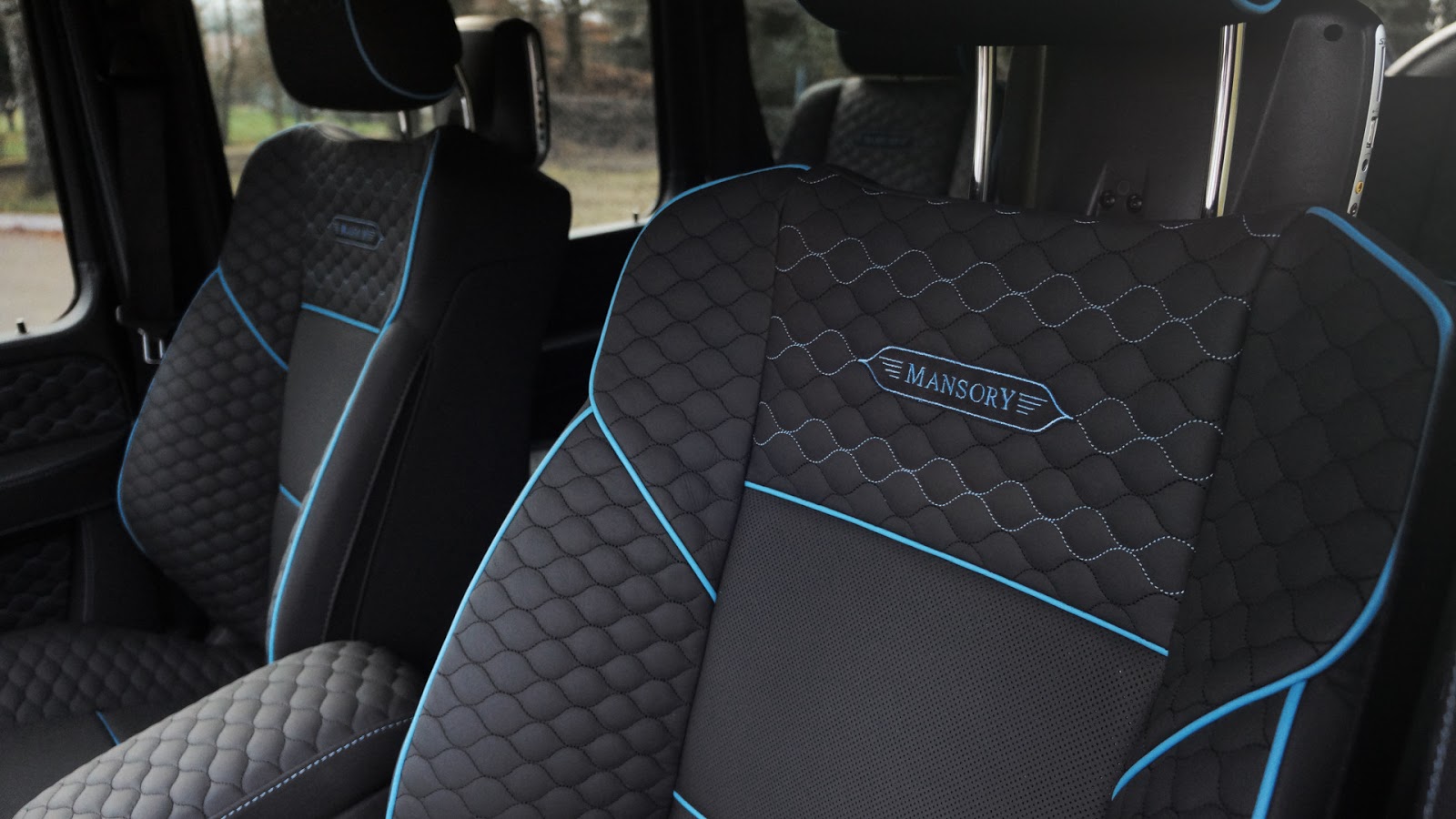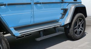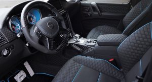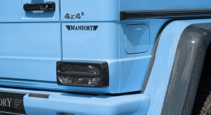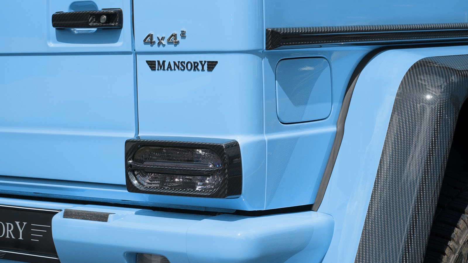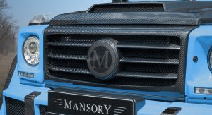 For starters, Mansory has adorned the 4×4² with a bespoke front end including carbon fiber headlight surrounds, a carbon grille and a carbon hood with a protruding air intake. Additionally, a set of new LED daytime running lights on either side of the aluminum skid plate have been added.