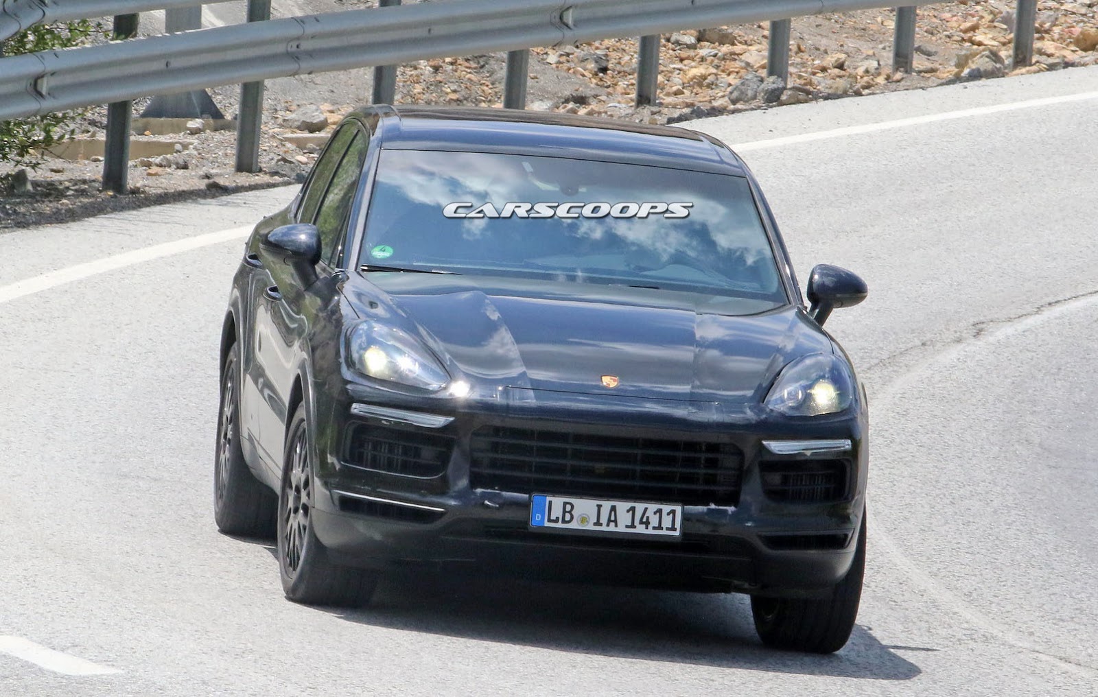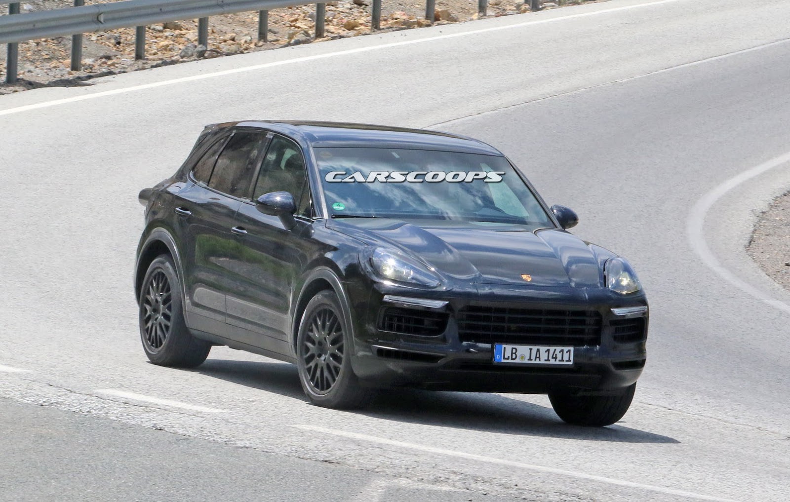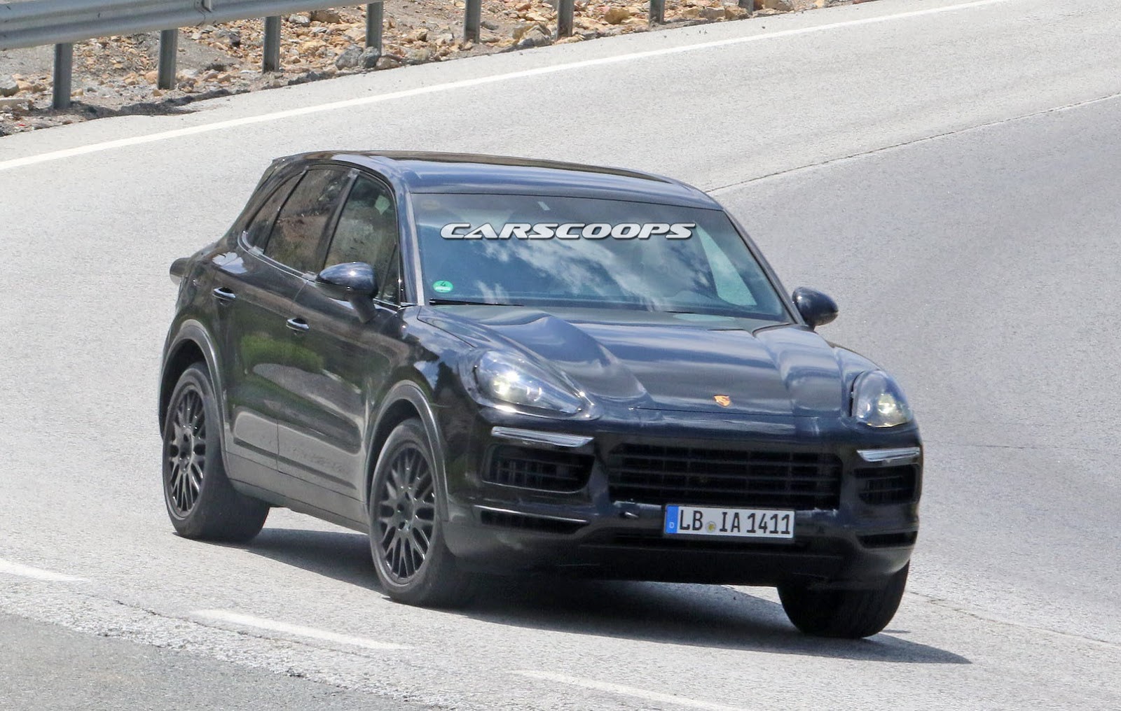 The prototype you see here still wears a custom body that resembles the current model, but the roof line is actually longer while the fitted roof spoiler is said to be active, helping the new Cayenne on improving its stability at higher speeds.