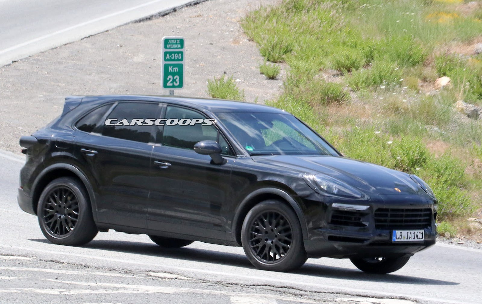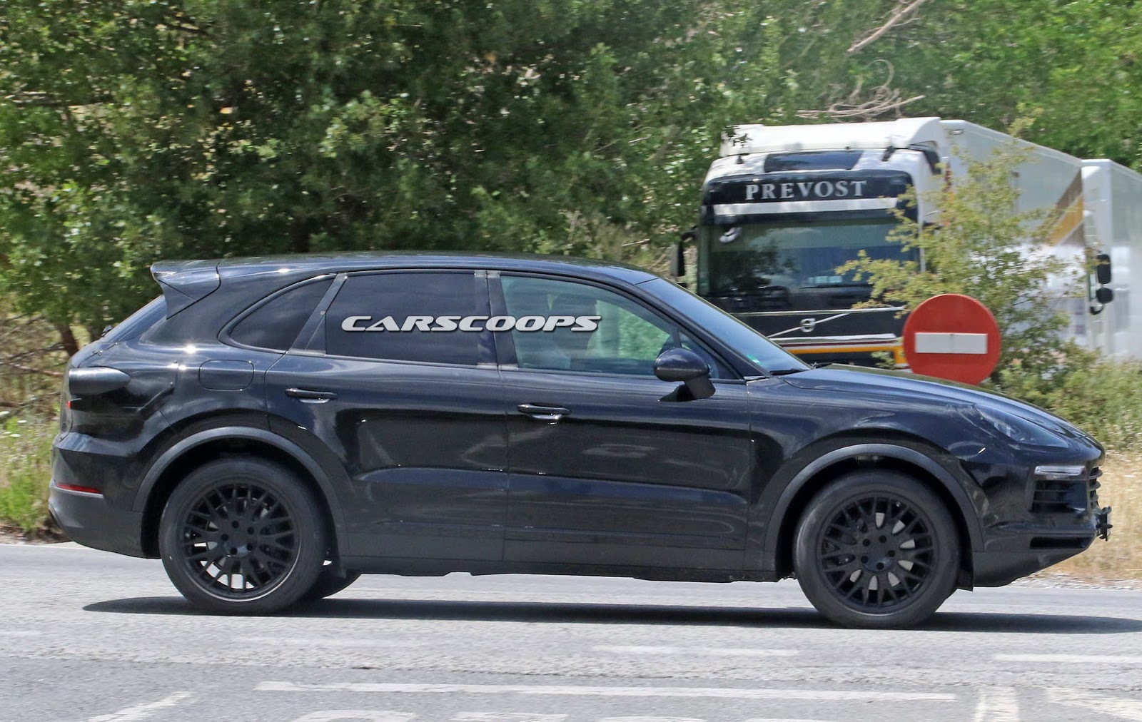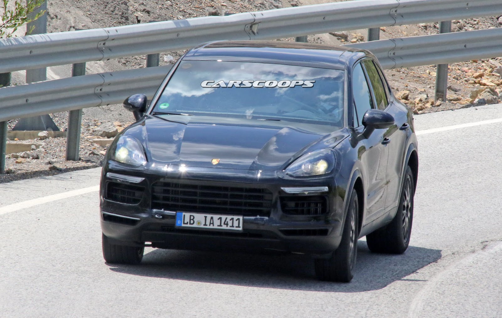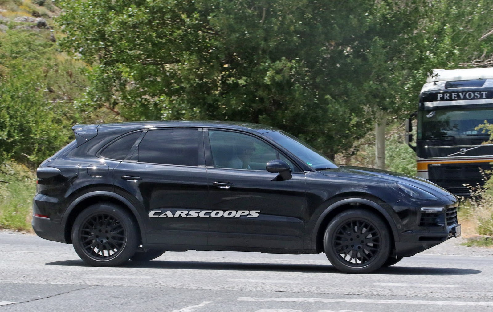 The prototype you see here still wears a custom body that resembles the current model, but the roof line is actually longer while the fitted roof spoiler is said to be active, helping the new Cayenne on improving its stability at higher speeds.