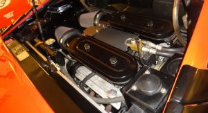 All four Webers were rebuilt and the cooling system was refurbished with the seller claiming that the car is ready to drive immediately. The orange paintwork is an older repaint in good condition with only a few small chips on the driver’s door and a scratch on the side mirror.