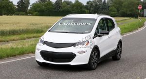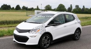 Hence the mild, but realistically speaking, unnecessary camouflage on this prototype that our spy shooters nabbed testing in Germany. The only exterior differences you’ll find between the North American Chevy Bolt and the Opel Ampera-e beyond from the badges are the European-style darker turning signals (not used on this tester).