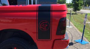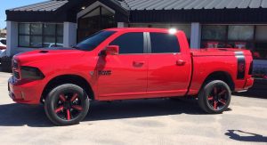 There’s no denying the truck’s sporty nature, especially with those dual-tone wheels and the tinted windows blending in so well with the predominantly red exterior.