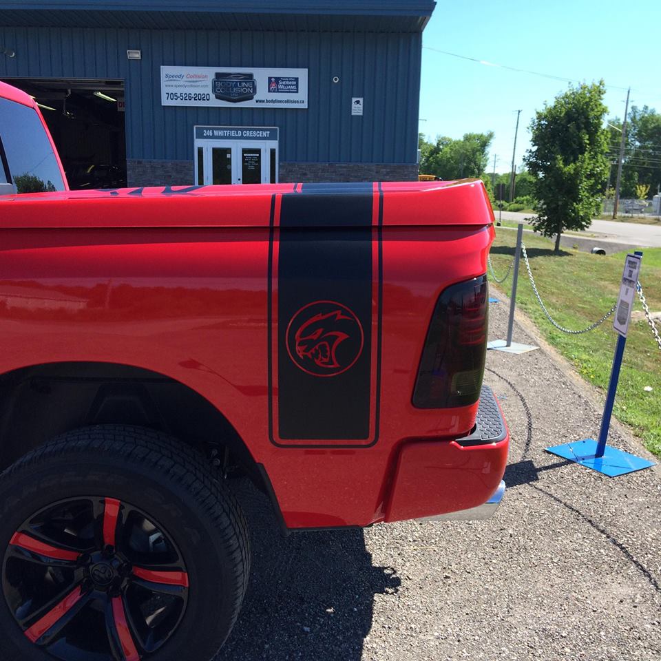 There’s no denying the truck’s sporty nature, especially with those dual-tone wheels and the tinted windows blending in so well with the predominantly red exterior.