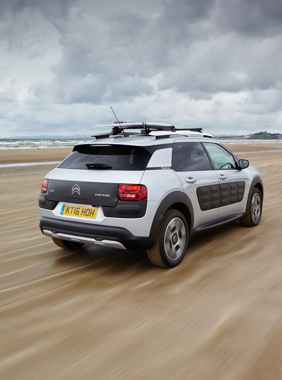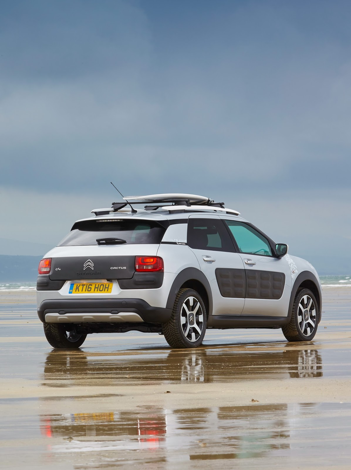In case you need a reminder, the Citroen C4 Cactus Rip Curl builds upon the Flair grade with its special exterior graphics, bumper protectors on both ends, 17-inch alloy wheels covered in Goodyear 4 seasons mud and snow rubber, and starts from £18,480 ($24,360). It also features a generous list of standard equipment that includes automatic headlights, rain-sensing wipers, automatic air conditioning, satellite navigation system, reverse camera and cruise control.