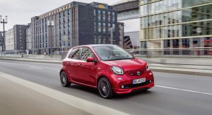 Other novelties for the 2016 model year include the optional metallic cadmium red shade for the ForFour, which costs €60 ($66) on the Passion and Prime grades and comes as a no-cost option on the Brabus and Brabus Xclusive. Moreover, the fabric top of the ForTwo Cabrio can now be ordered in light beige and brown in the Brabus tailor made individualization program for an extra €996 ($1,097).