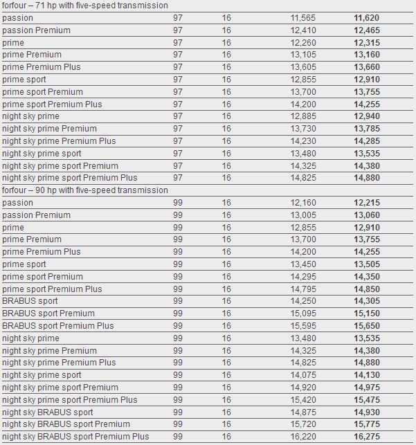 Entry-level fortwo coupe ‘passion’ models are now better-looking according to the automaker thanks to a fabric-covered roof, whereas forfour night sky ‘prime’ and ‘prime sport’ versions come with an electric fabric roof.