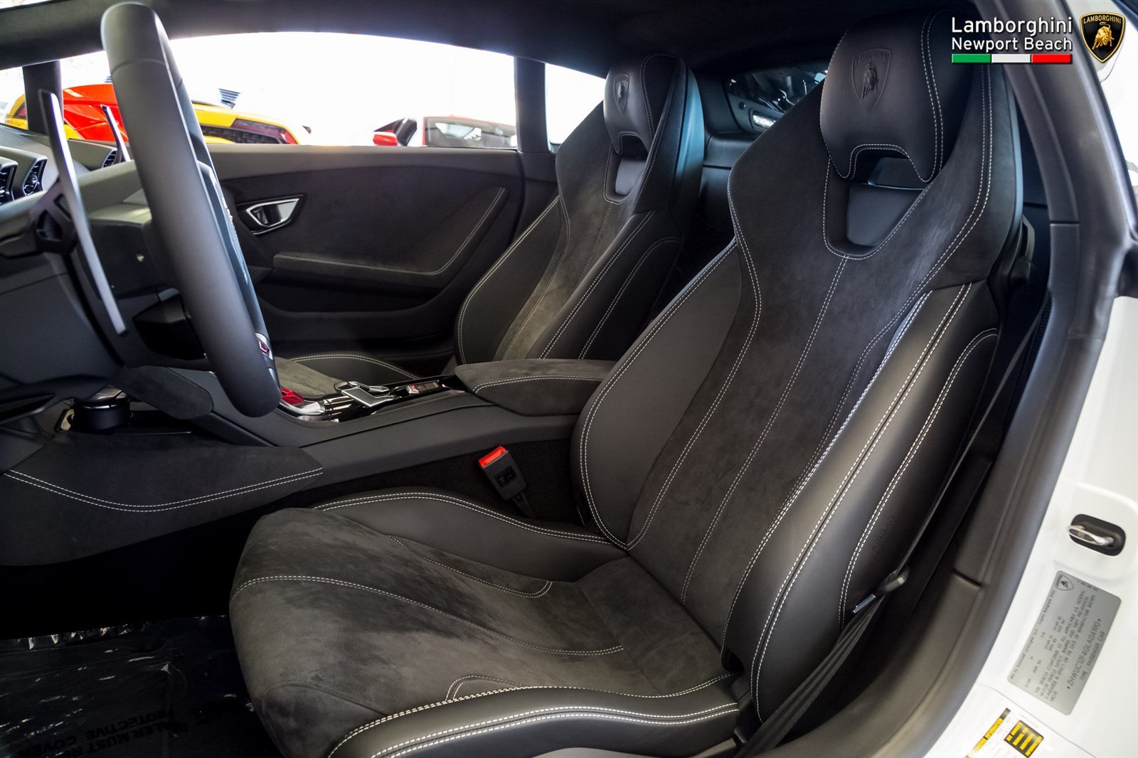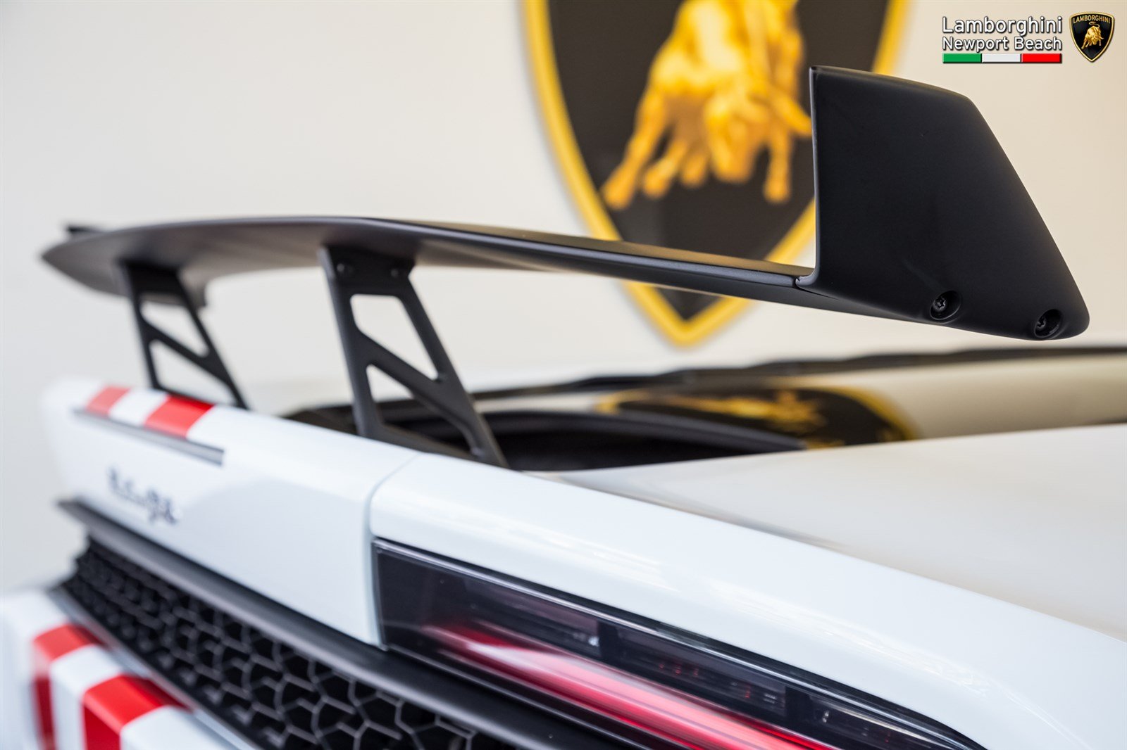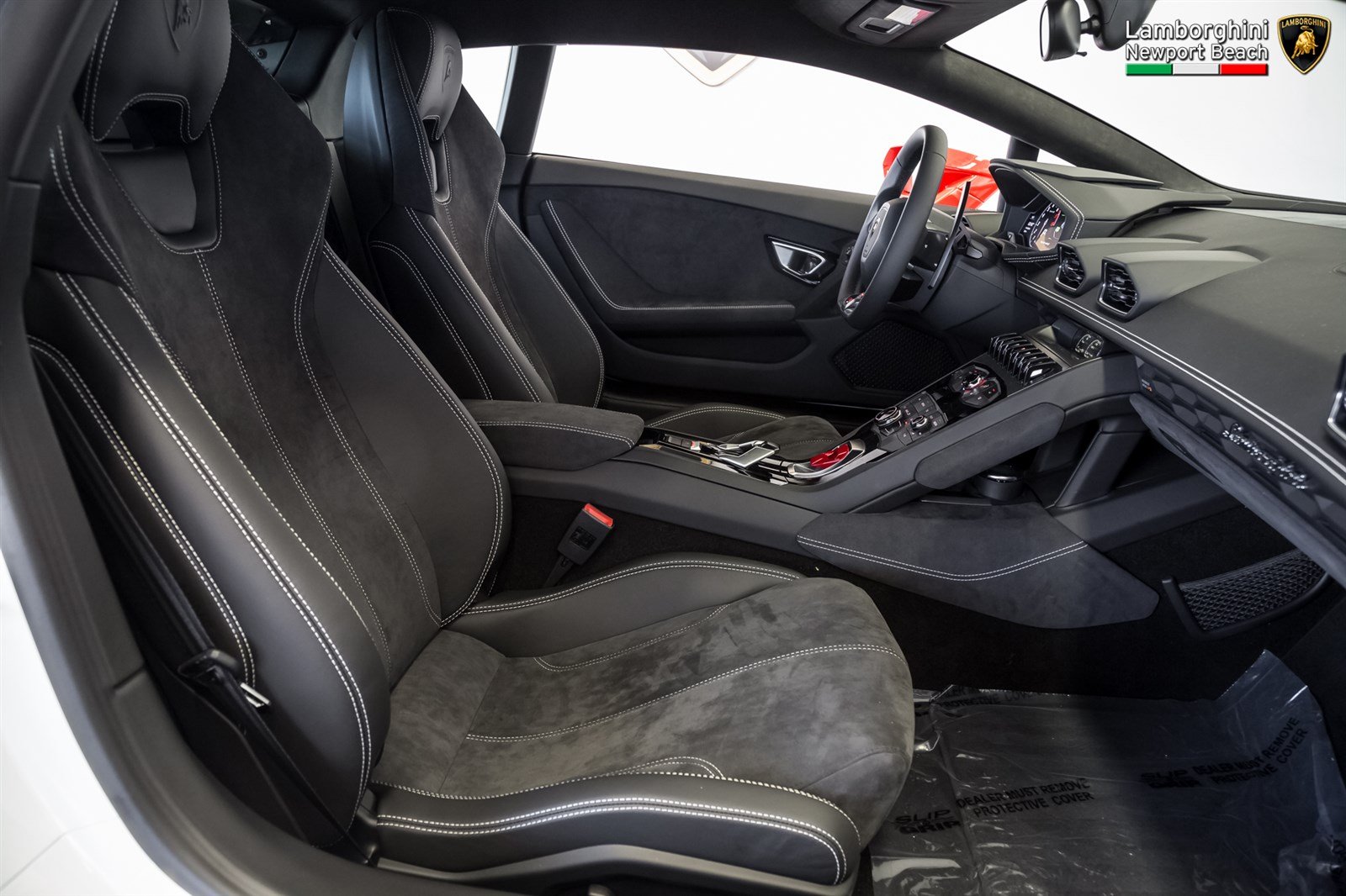 According to the description, the 601 HP (610 PS), 5.2-lire V10-powered, all-wheel-drive supercar features many new OEM Lamborghini accessories, made available via Lamborghini’s Accessori Originali catalog. It comes with the Track Telemetry Package, full Exterior Aero-Body Kit, Lamborghini Script and Shield Puddle Lights, and Aesthetics Graphics Kit in Red, contrasting the stylishly Bianco Monocerus exterior hue.