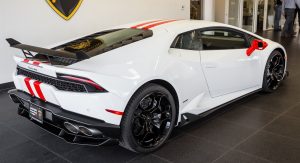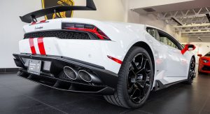 This, then, is Lamborghini’s own €19,850 ($22,500) aerodynamic kit for the Huracan – an option that the automaker silently made available for its entry-level speed machine. Now, thanks to Lamborghini Newport Beach, we can see the package in all its glory, as it’s fitted on ths 2016 Huracan LP610-4 that’s up for sale.