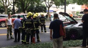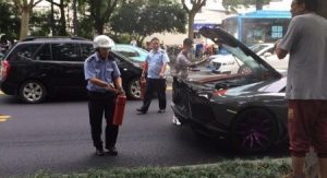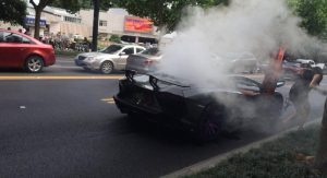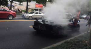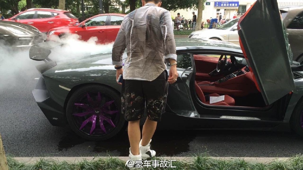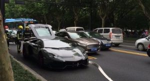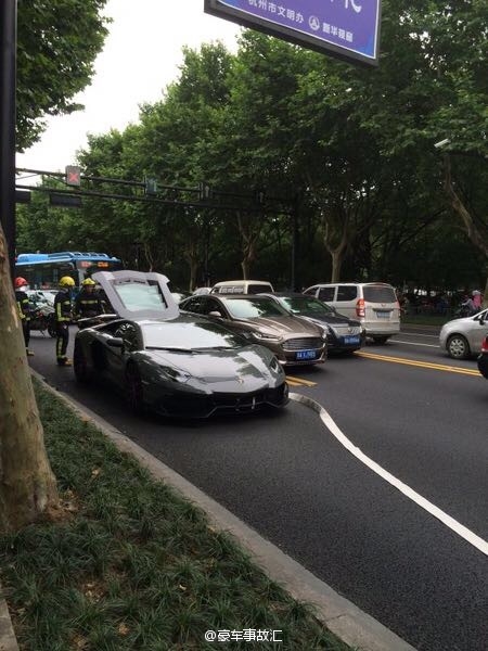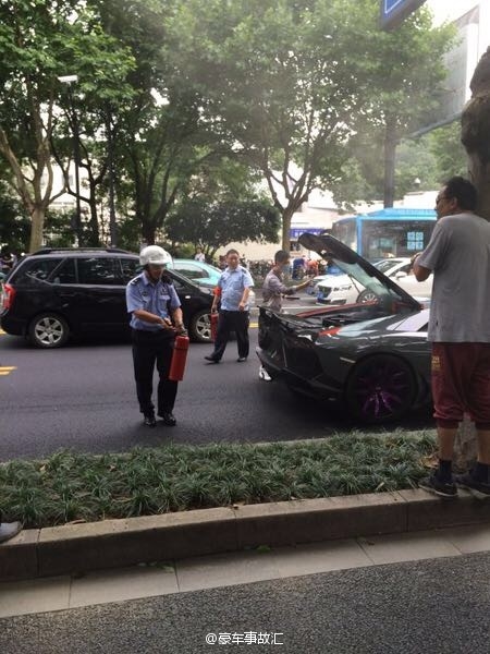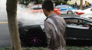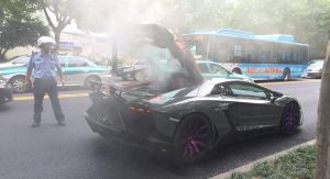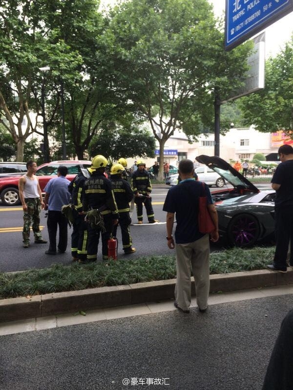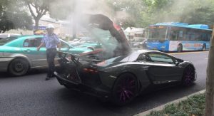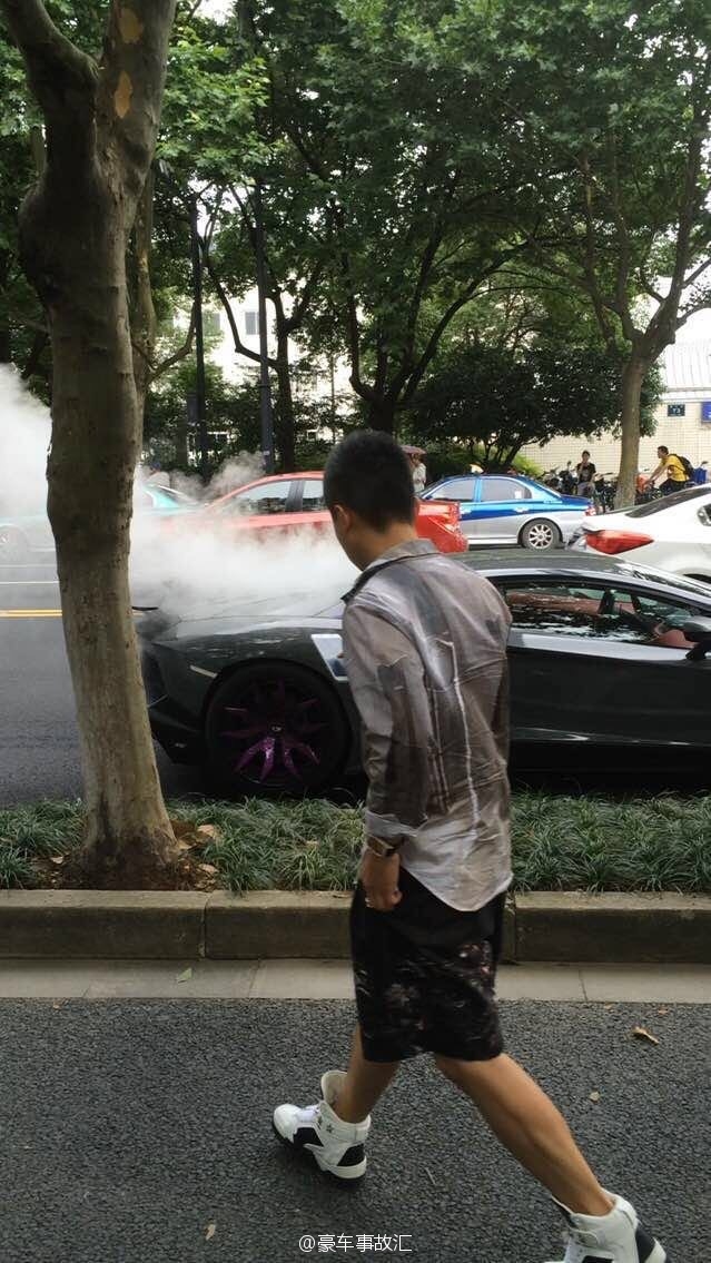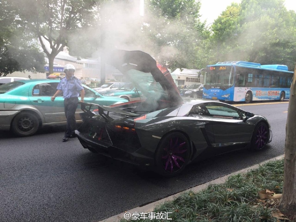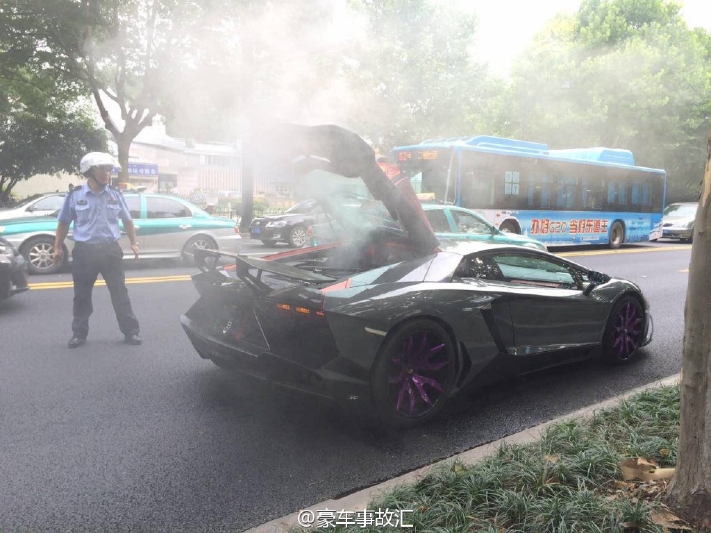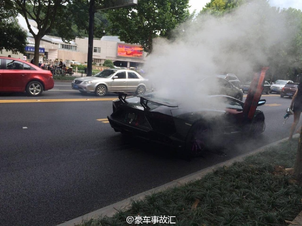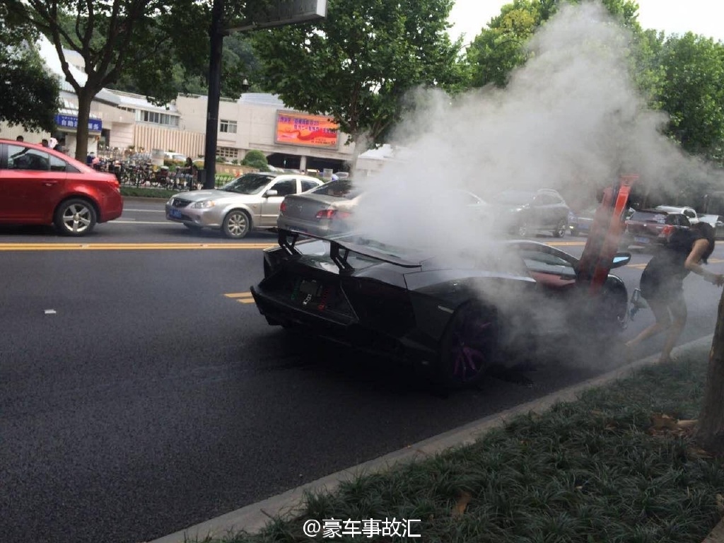 One Aventador has been spotted on the side of the road in Hangzhou, China, with its boot opened and white smoke surrounding it. Not good. Not good at all…