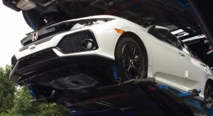 While we’re still waiting for Honda to reveal the 2017 Civic hatchback in a proper, high-resolution type of way, these images do help shine a light on some of the differences between the final product and the previously mentioned prototype, which caused quite a stir in NY. The production-version model is obviously a little bit “toned down” aesthetically, yet all the angles and aggressive-looking body panels that were there on the concept are also present here.