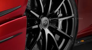Other notable body panels finished in exposed carbon-fiber are the front bumper splitter and dive planes, the sides skirts with the side intake, and the hood and the roof – which comes with an air-feeding scoop.