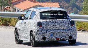 Most significantly, the test mule snapped testing is sporting a larger front chin spoiler and bigger air intakes than the standard car, giving the performance-focused model much more road presence. Additionally, the car has been installed with flared front and rear wheel arches, enlarged five stud wheels, a small roof spoiler and twin exhaust pipes.