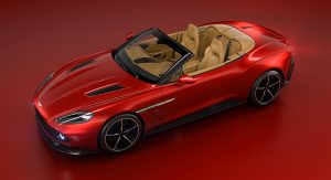 Power for the Vanquish Zagato Volante comes courtesy of the firm’s soon-to-be discontinued 5.9-liter naturally-aspirated V12 engine. Compared to the standard Volante, power for the Zagato model has increased from 568 hp to 592 hp, resulting in a 0-60 mph (96 km/h) time of just 3.7 seconds.