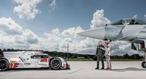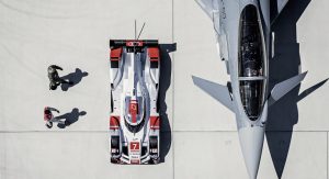 For the latest issue of its Encounter technology magazine, Audi brought its victorious hybrid Le Mans prototype together with Europe’s cutting-edge multirole fighter jet, manufactured by the Eurofighter GmbH consortium based in Hallgermoos, Bavaria at the edge of the Munich International Airport – just an hour’s drive down the A9 autobahn from Ingolstadt where Audi is based.