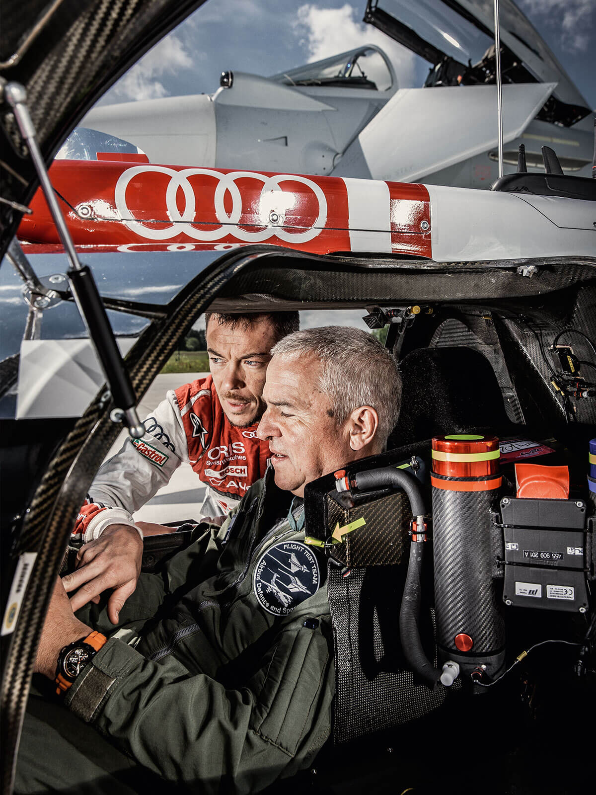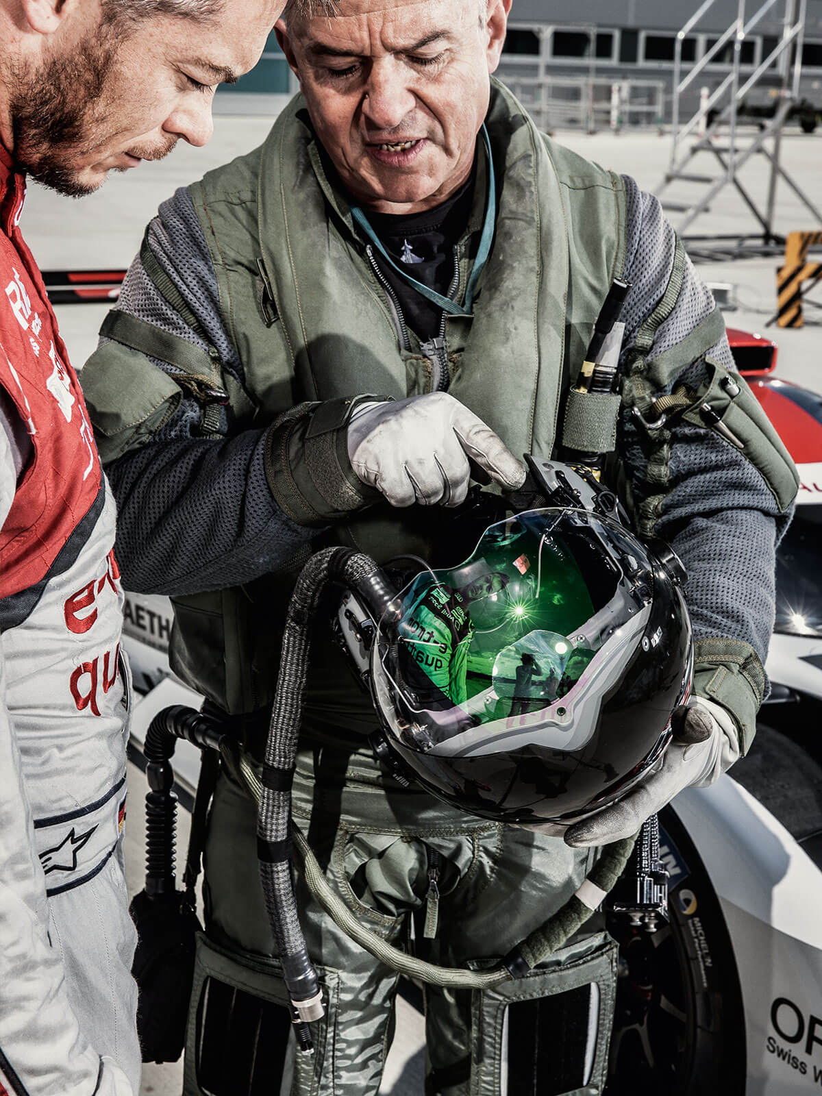 They didn’t just bring the machinery, though: they also brought together the prime pilots of each vehicle. It was a chance for three-time Le Mans winner André Lotterer to meet the Typhoon’s chief test pilot Geri Krähenbühl. Both are highly trained and at the height of their respective fields, and despite an eighteen-year age gap and wildly different backgrounds, share even more in common than the vehicles they’ve committed their careers to pushing to the edges of their respective designs.