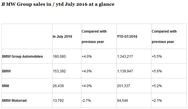 In Europe, BMW and MINI sold 79,815 vehicles in July, a 5.6 percent increase, while year-to-date sales are up 10.5 percent, with 622,664 examples finding new homes. Contributing to the numbers were Germany (182,390), the UK (136,914) and France (49,755).
