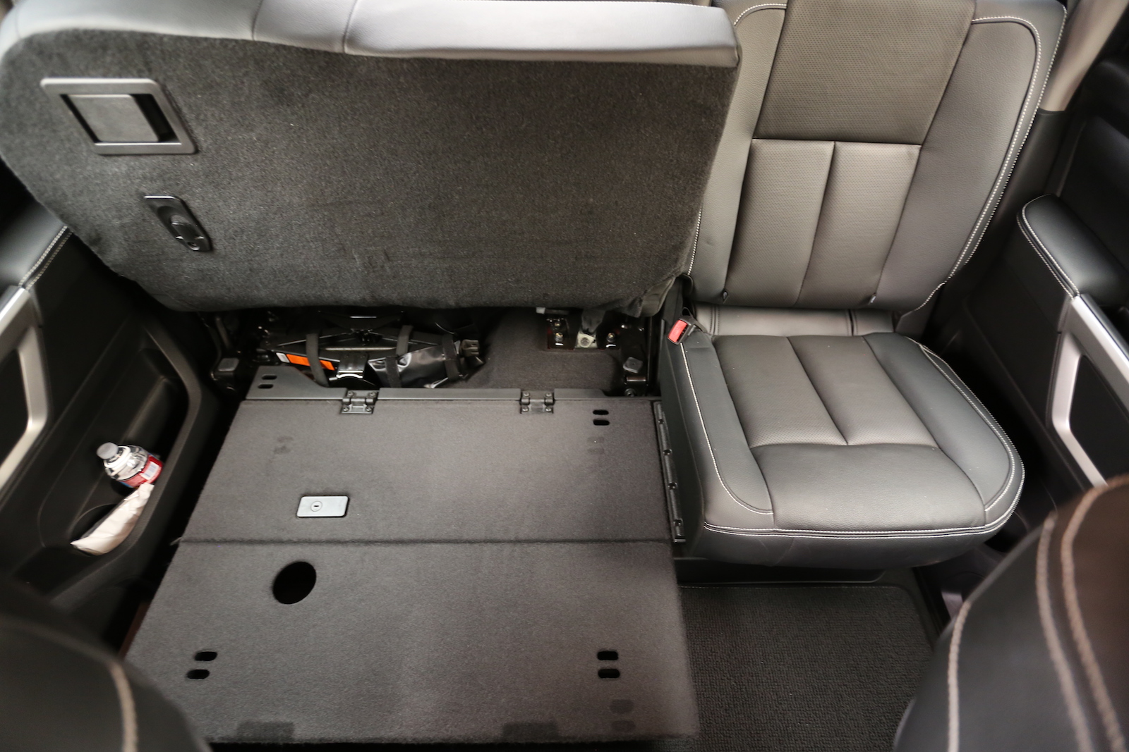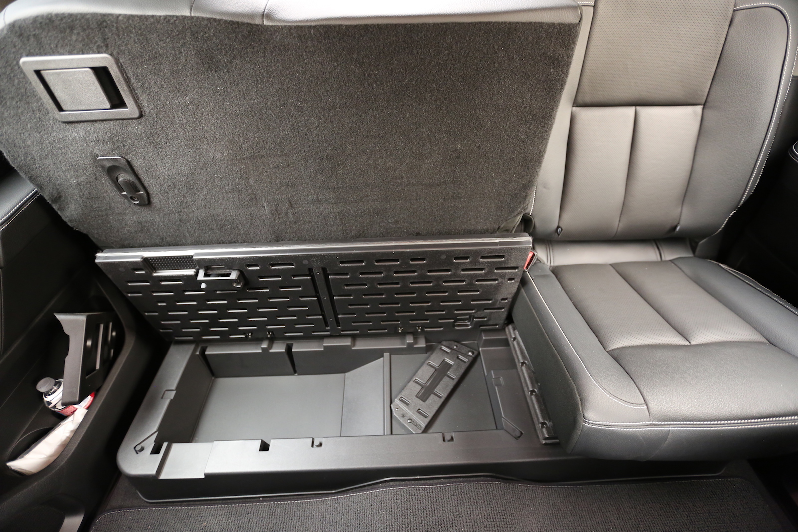 At least there are lots of places to put things. A generous center console is a given, but there are cupholders at nearly every corner. Under the rear bench seat, there are covered storage bins, too.