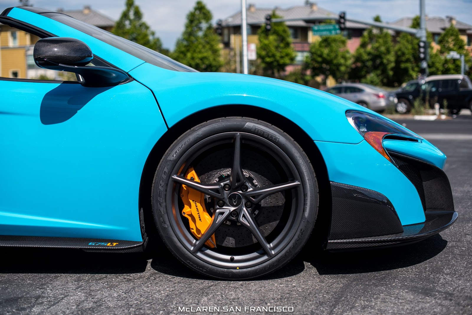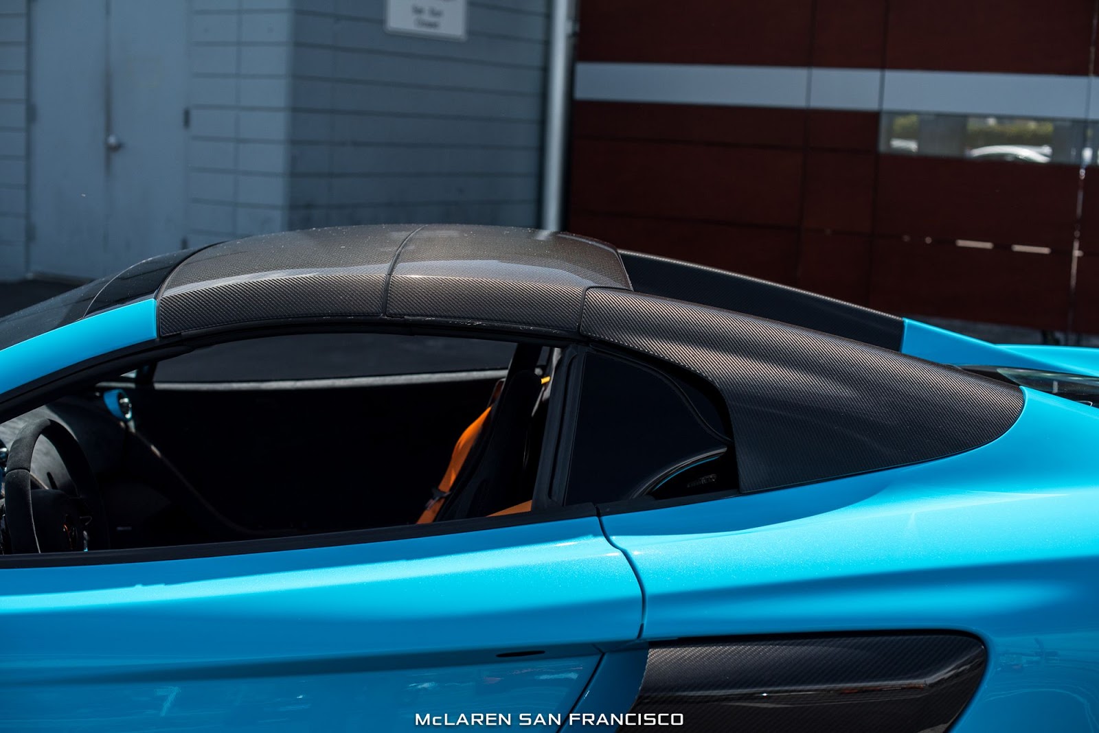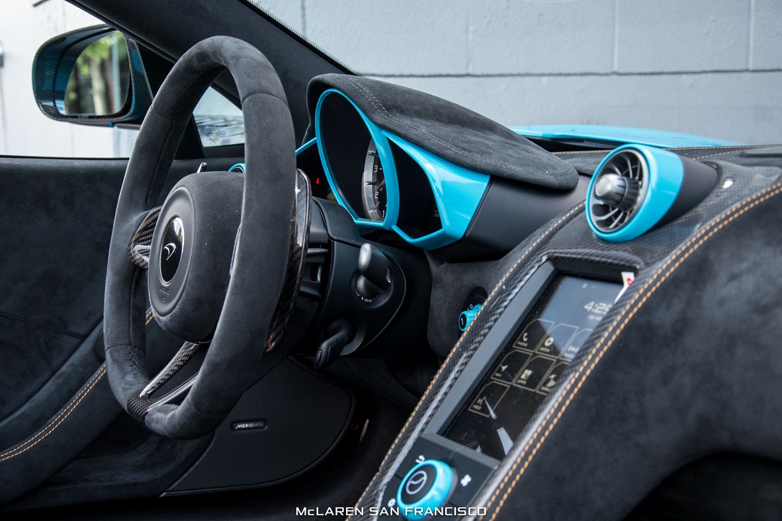 Recently delivered by McLaren San Francisco and displayed throughout Monterey Car Week, this 675LT Spider has been painted in a stunning shade dubbed Fistral Blue. Unlike any other blue we’ve seen adorning a McLaren, the color screams for attention under direct sunlight and suits the aggressive and in-your-face character of the LT to an absolute tee.