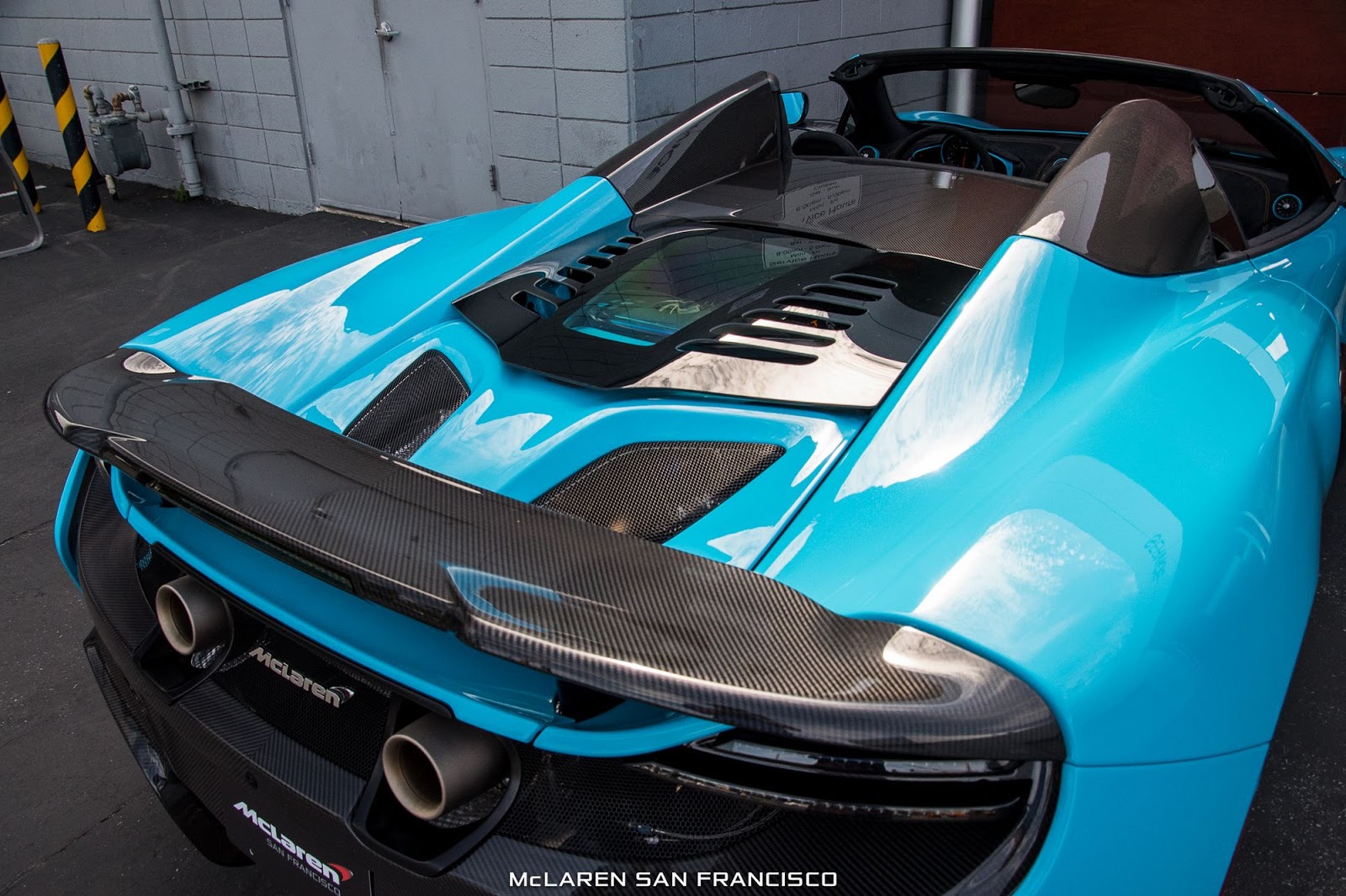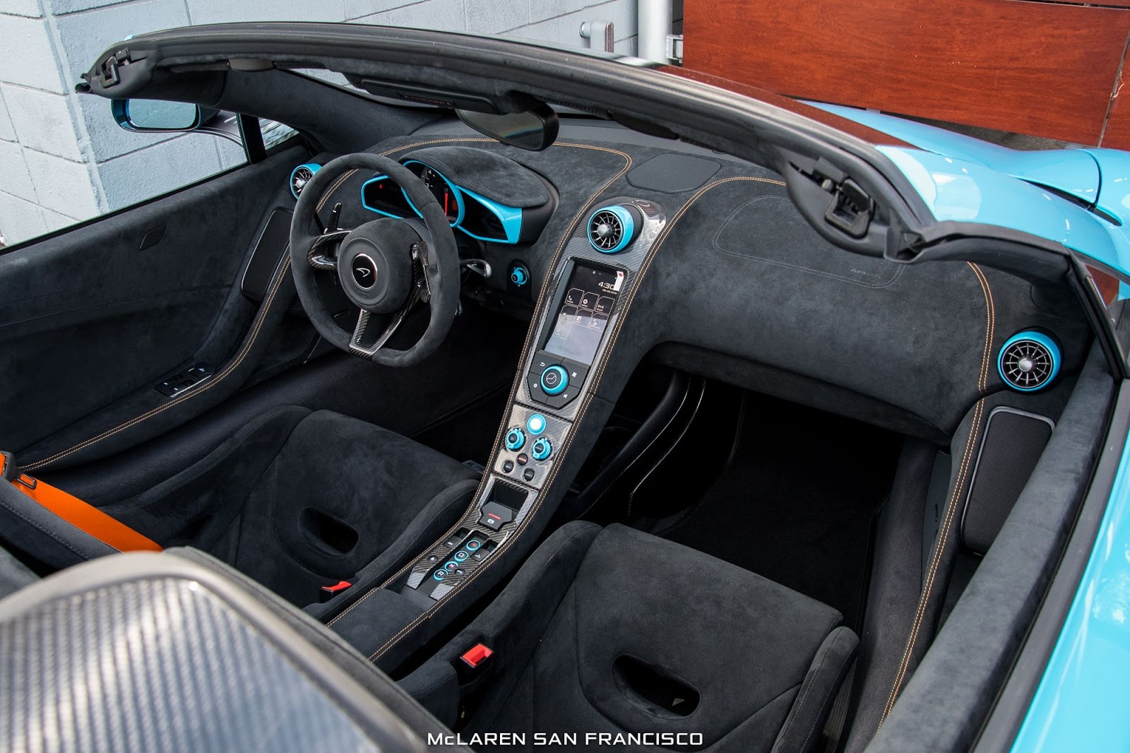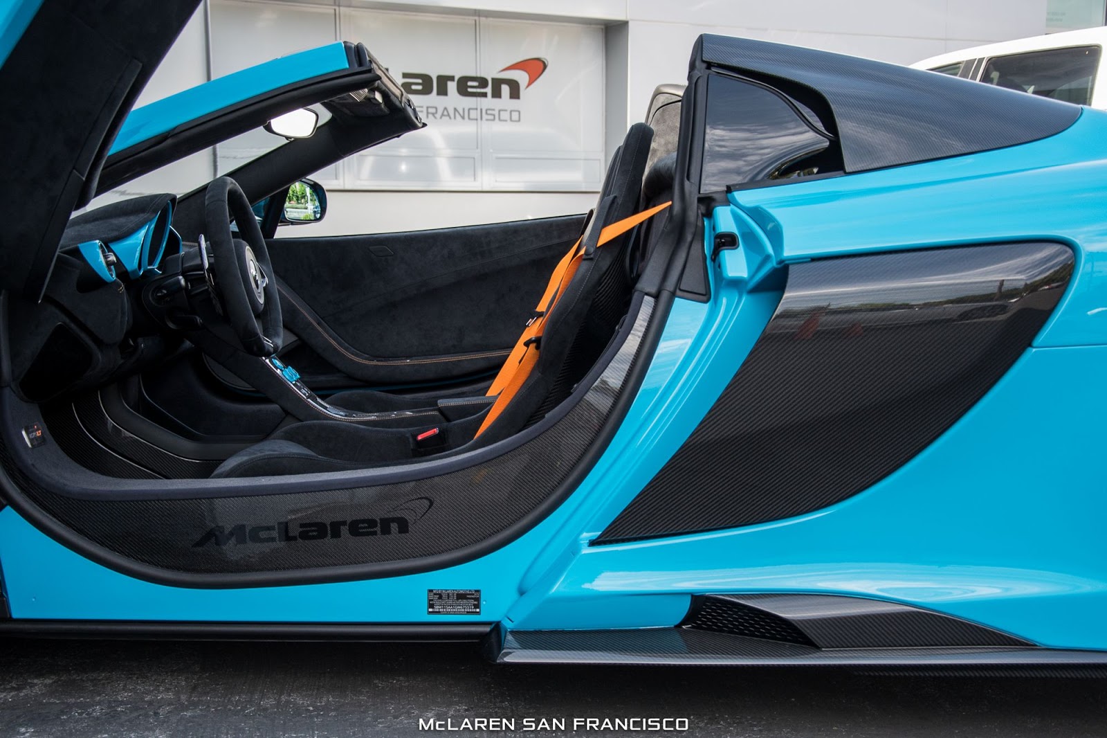 Recently delivered by McLaren San Francisco and displayed throughout Monterey Car Week, this 675LT Spider has been painted in a stunning shade dubbed Fistral Blue. Unlike any other blue we’ve seen adorning a McLaren, the color screams for attention under direct sunlight and suits the aggressive and in-your-face character of the LT to an absolute tee.