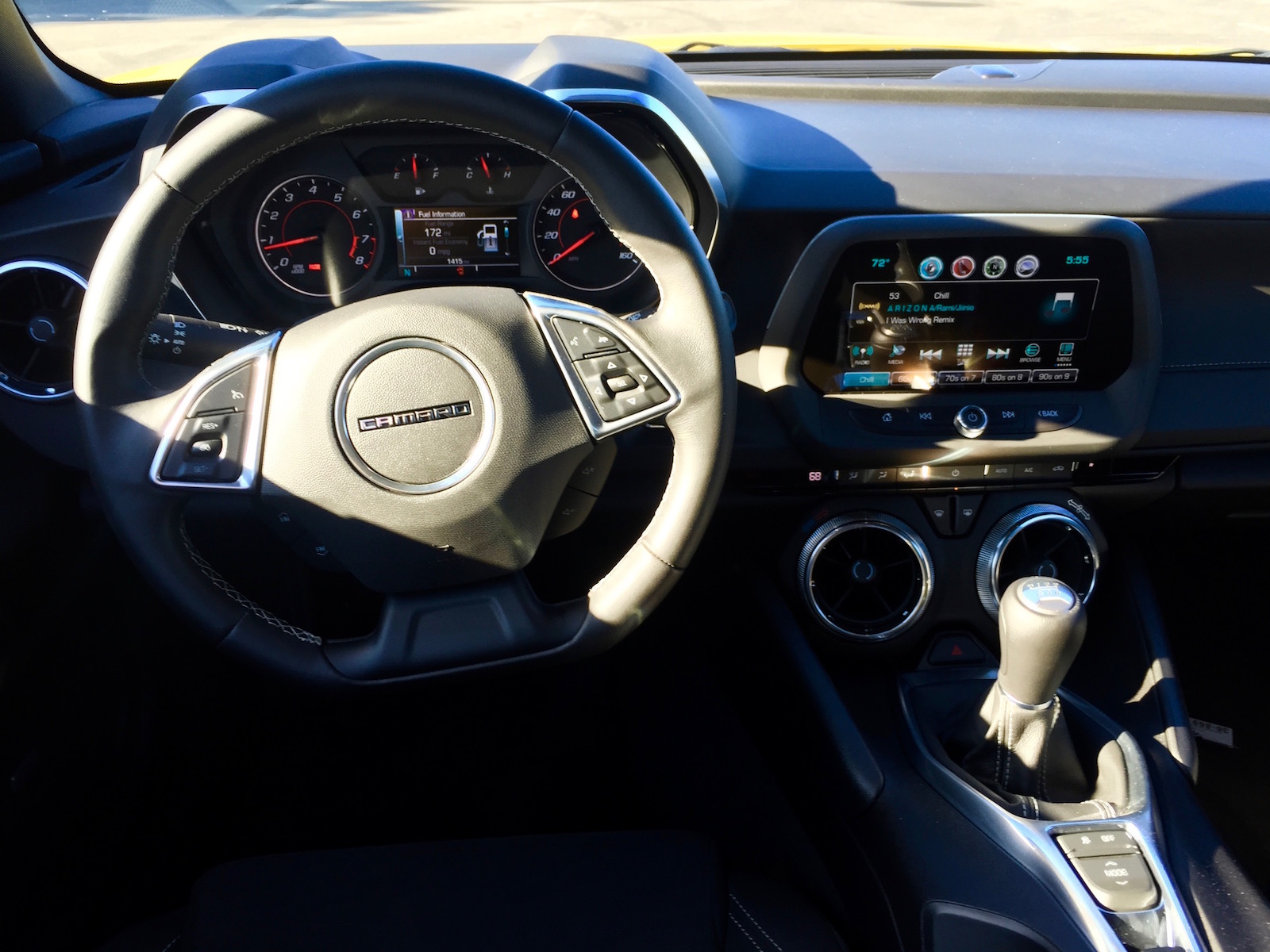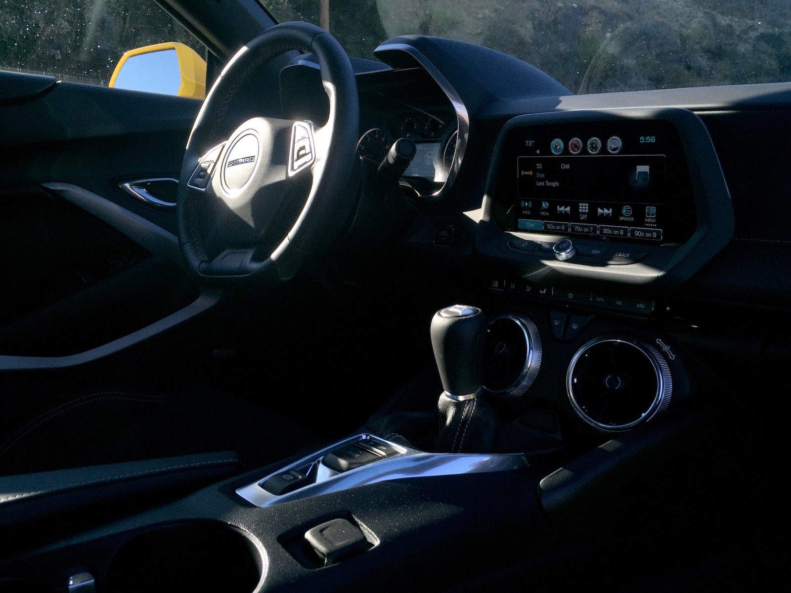 You only notice the changes to the 2016 Camaro when parked alongside a 2015 model. And that’s when the slimmer size and more chiseled appearance really show. It does look more athletic, and I was generally a fan of the old one. My test car benefits from the optional RS package, which includes the LED accents on the HID headlights and some other cosmetic trinkets. I could do without the black 20-inch wheels, however.