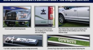 “Everyone in our organization is excited about the new Dallas Cowboys edition F-150,” says Jones. “Ford F-150 and the Dallas Cowboys are known worldwide for their rich heritages and long winning traditions. Our Cowboys fans are among the most passionate in all of sports. We are proud to partner with Ford and Texas Ford dealers to bring this Cowboys edition F-150 to our incredible fans. I think you will agree it is the ultimate truck for the ultimate Cowboys fan.”