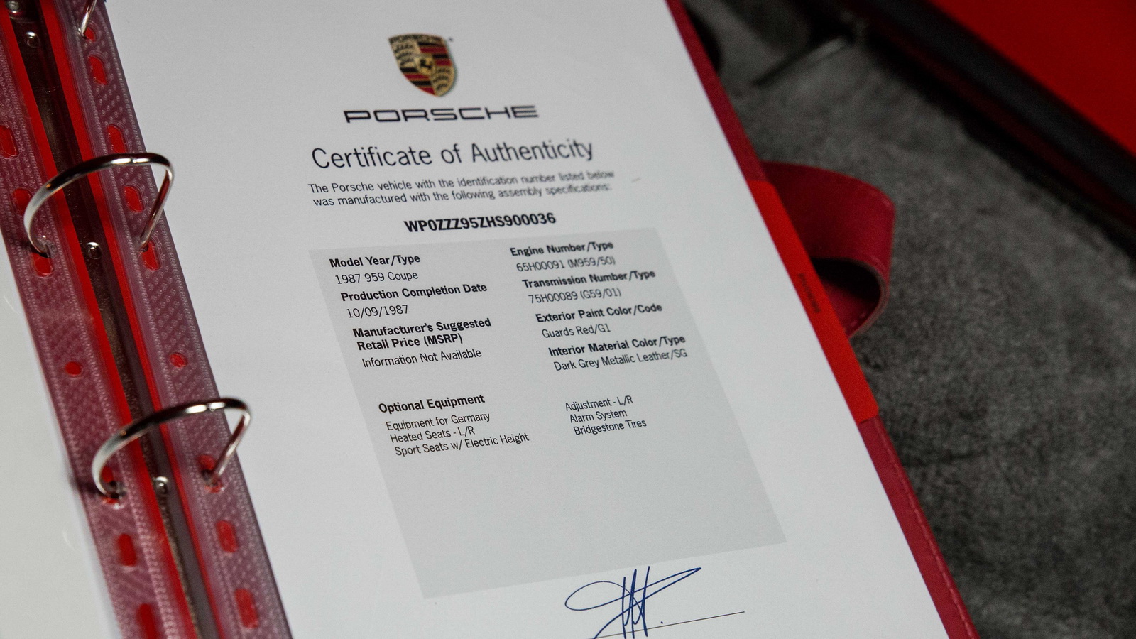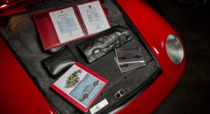 During its 29 years of existence, this Porsche 959 received regular servicing carried out by its previous owner, who spent nearly $30,000 to bring it up-to-date. Moreover, the car benefits from a well-documented ownership history and it’s accompanied by US and UK Porsche Certificates of Authenticity, owner’s manual, workshop manual, hazard triangle, jack, multiplier wrench, tire compressor, tire pressure gauge, tools, belts, towel and white leather gloves.