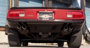 It’s wearing a Ghia-designed body, but unlike its better known rivals, it has a Ford-sourced, 351 CID Cleveland V8 mid-mounted engine, paired to a ZF five-speed manual transmission that channels 266 HP (270 PS) and 301 lb-ft (408 Nm) of torque to the rear wheels. Nevertheless, even by today’s standards, its ability to shoot from naught to 60 mph (96 km/h) in 6 seconds is acceptable.
