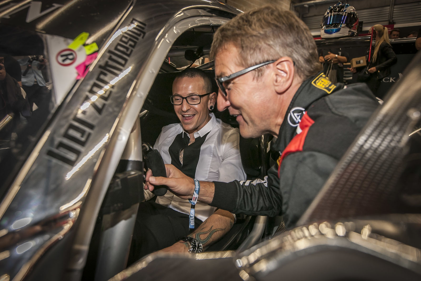 Band members Hahn, Dave Farrell and Chester Bennington were on hand for the race, sporting matching racing suits and even waving the flag to start the race. Unfortunately the car – fielded by Team Black Falcon and driven by Maro Engel, Yelmer Buurman and Bernd Schneider – didn’t fare well in the race, finishing way down in 20th place. ROWE Racing took the checkered flag in a BMW M6 GT3, followed by another Mercedes-AMG GT3 entered by Akka ASP and an Audi R8 LMS by Belgian Audi Club Team WRT.