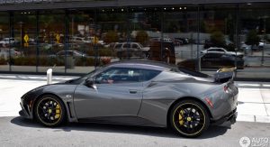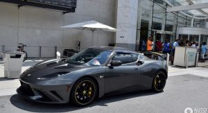 What sets this particular car apart from a regular Lotus Evora S are the modified front and rear bumpers, new exterior mirrors and the fixed rear wing which provides additional downforce. It’s also packing yellow accents around the wheels, rear diffuser and around the writing on the carbon fiber wing.
