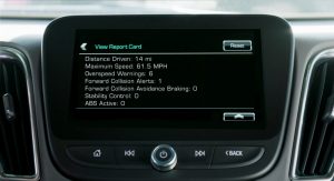 The previously mentioned in-vehicle “report card” is able to keep track of the following (depending on the vehicle): distance driven, maximum speed reached, overspeed warnings issued, stability control events, antilock braking events, forward collision alerts, and forward collision braking events.
