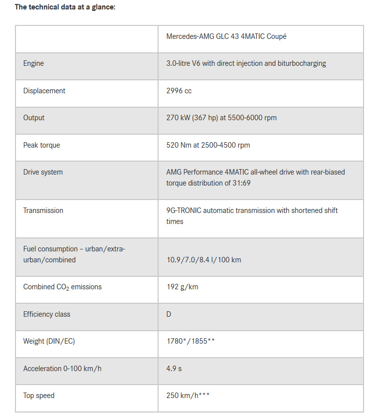 Following its world premiere at the Paris Motor Show on September 28, the Mercedes-AMG GLC 43 4MATIC Coupé will go on sale in Europe in December this year, and in North America and other countries around the world, in the first quarter of 2017.