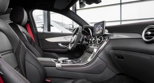 The half-fat Mercedes-AMG model adopts a few aggressive cues on the outside with 19-inch five-spoke alloys in tires size 235/55 front and 255/50 rear or even larger 21-inch rims as an option, a diamond radiator grille, gloss black and chrome details and a four-pipe exhaust. Inside, AMG gave the GLC 43 a black interior with contrasting red features, aluminum trim, dedicated instrument panel graphics and sports steering wheel and front seats.
