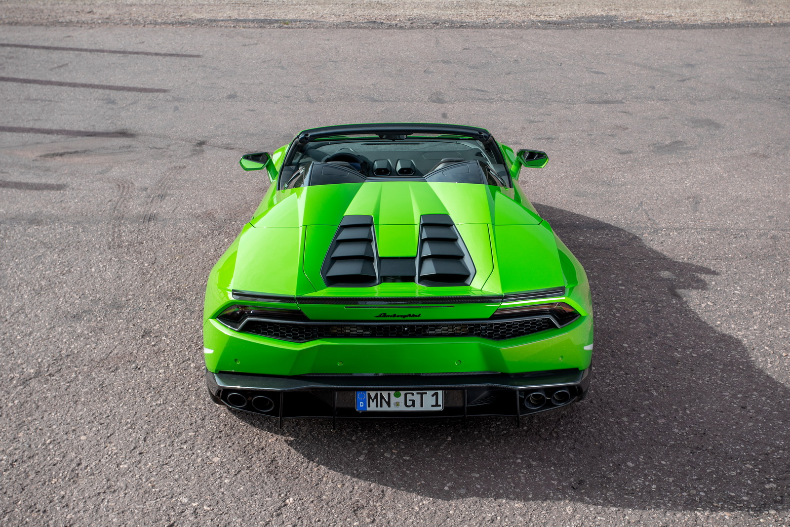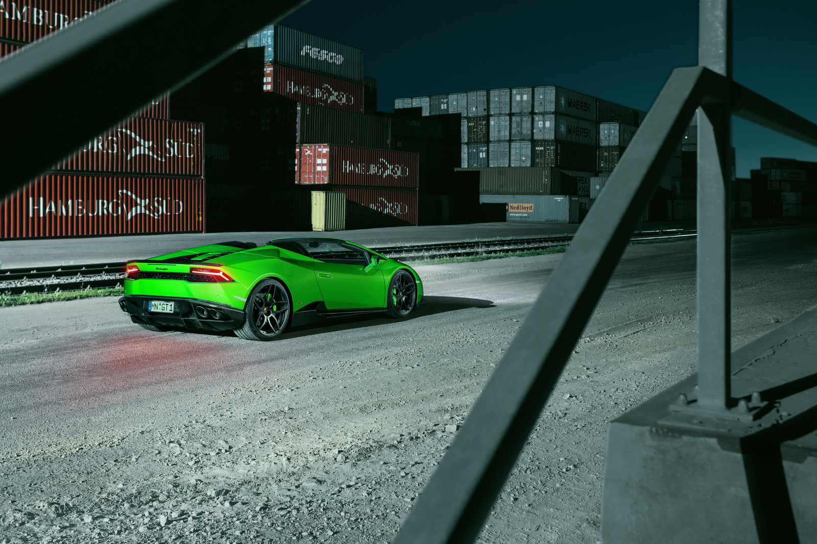Novitec’s take on the Huracan Spyder features a full carbon-fiber aero kit, of course – complete with front splitter, hood vents, rocker panels, side intakes, rear diffuser and lip spoiler – all made of carbon fiber and tested in the wind tunnel. But that’s not the end of it.
