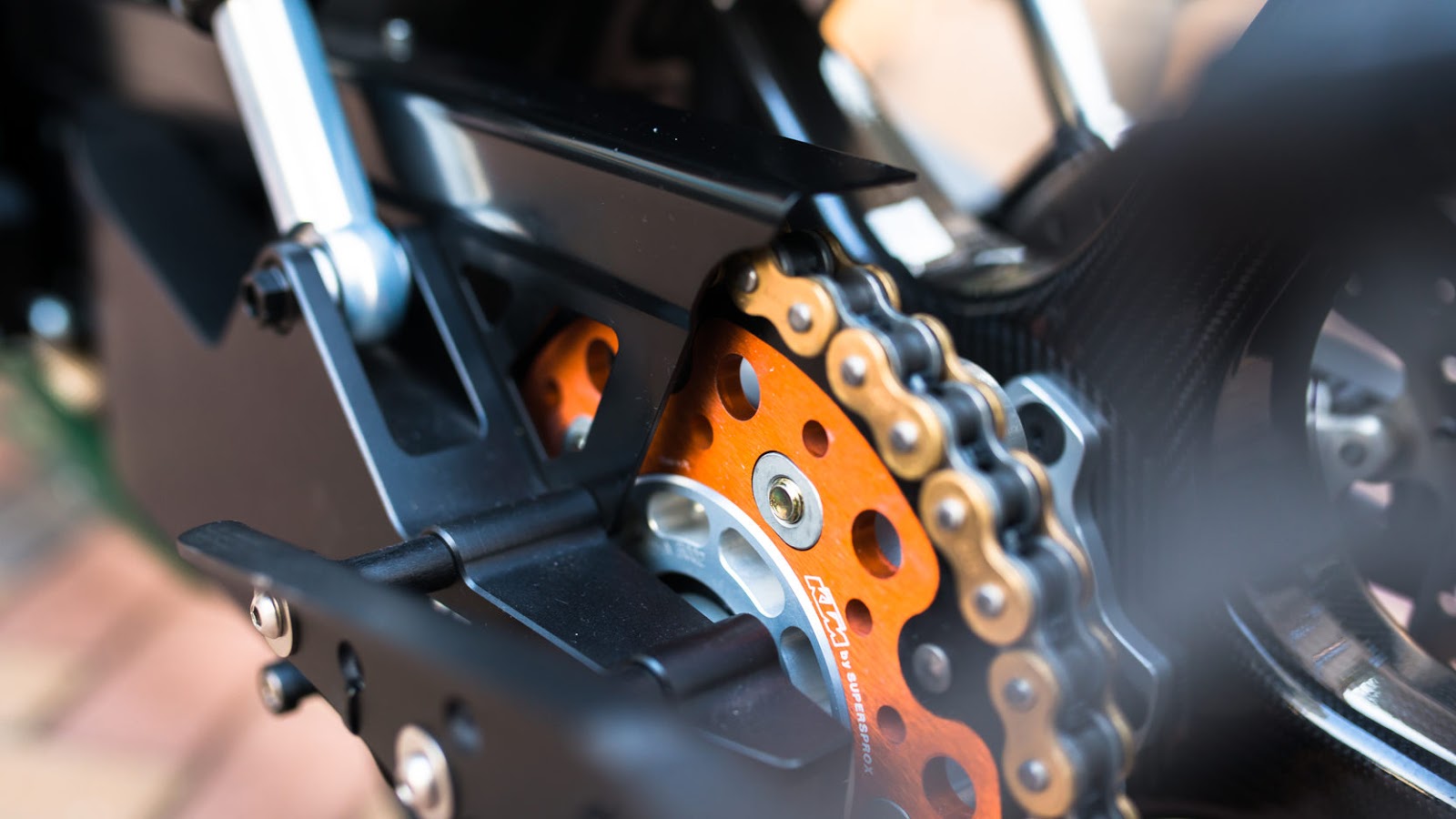 It also features an aluminum-casted swingarm, 320mm Brembo racing brakes, twin Ohlins rear suspension, upside-down Sachs forks, and carbon-fiber wheels.